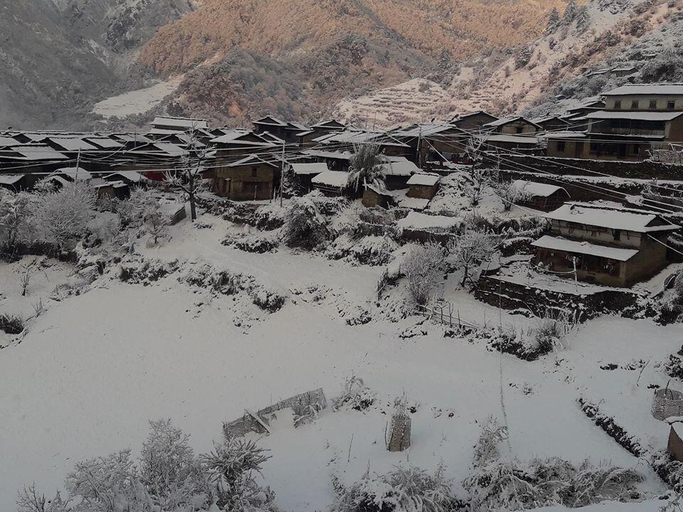 नजिकै देखिने चाँदी जस्तै टल्कने हिमाल, बिहान उदाउने सूर्य गुर्जा, चुरेन र पुथा हिमालमा पर्दा सुनजस्तै टल्किने गूर्जामा आइतबार रातीदेखि परेको हिमपातले गाउँ आसपासका अग्ला डाँडाहरु हिउँले सेताम्मे भएका छन् । हिमपातले गुजमुज्ज गाउँका सबै घरधुरी सेतो घुम्तो ओढेकी बेहुली झैं देखिन्छ ।