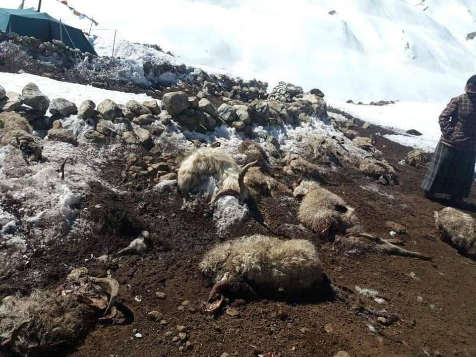 सीमा प्रहरी चौकी लोमान्थाङले दिएको जानकारी अनुसार लगातारको हिमपातका कारण लोमान्थाङ गाउँपालिका ३, ४ र ५ मा ८ सय ८८ भेडा च्याङ्ग्रा, २ सय ३९ चौरी मरेका हुन् । हिमपातबाट ५५ जना स्थानीय कृषकहरु पीडित बनेको प्रहरी चौकीले जनाएको छ ।हिमपातका कारण थासाङ गाउँपालिका-२ का गोविन्द शेरचनले पालेका ८ वटा चौँरी गाईसमेत हिउँ पहिरोमा परि मरेका हुन् ।