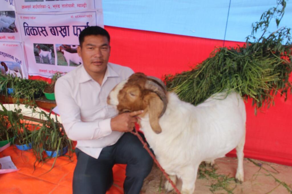 बेनीमा प्रथम रेडियो म्याग्दी पर्यटन महोत्सवको अवसरमा बेनी नगरपालिका–३ भकिम्लीका धन श्रीषको फर्मबाट ल्याइएको बोयर । बोयर जातका बाख्रा मध्ये अफ्रिका र अष्ट्रेलियाबाट खरिद गरी ल्याइएका बोयर पाल्ने गरेका श्रीषले महोत्सवमा रहेको बाख्रापालक कृषक समुहको स्टलमा बाख्रापालनका लागि आवश्यक पर्ने औजार, घाँस सहित प्राविधिक विषयमा जानकारी दिने गरेका छन् । बा्रखापालन गर्न चाहनेले महोत्सवमा निशुल्क परामर्श दिने जनाइएको छ । श्रीषको फर्ममा २ लाखसम्म पर्ने बोयर छ । तस्वीर बेनीअनलाइन
