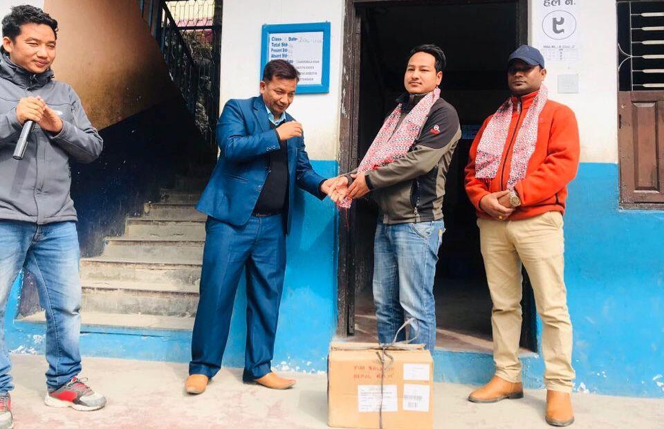 कोराना भाइरसका संवेदनशीलतालाई मध्यनजर गरी विद्यालयमा रहेको प्राथमिक उपचार केन्द्रमा प्रयोग गर्ने गरी रुघा लागेका बिरामीलाई माक्स, टाउको दुख्ने, खोकी, ज्वरो जस्ता प्राथमिक उपचारमा आवश्यक पर्ने औषधी सेन्टरका सञ्चालक प्रमोद महतो र गोविन्द थापाले विद्यालयका प्रधानाध्यापक दिपक श्रेष्ठलाई हस्तान्तरण गरेका थिए ।