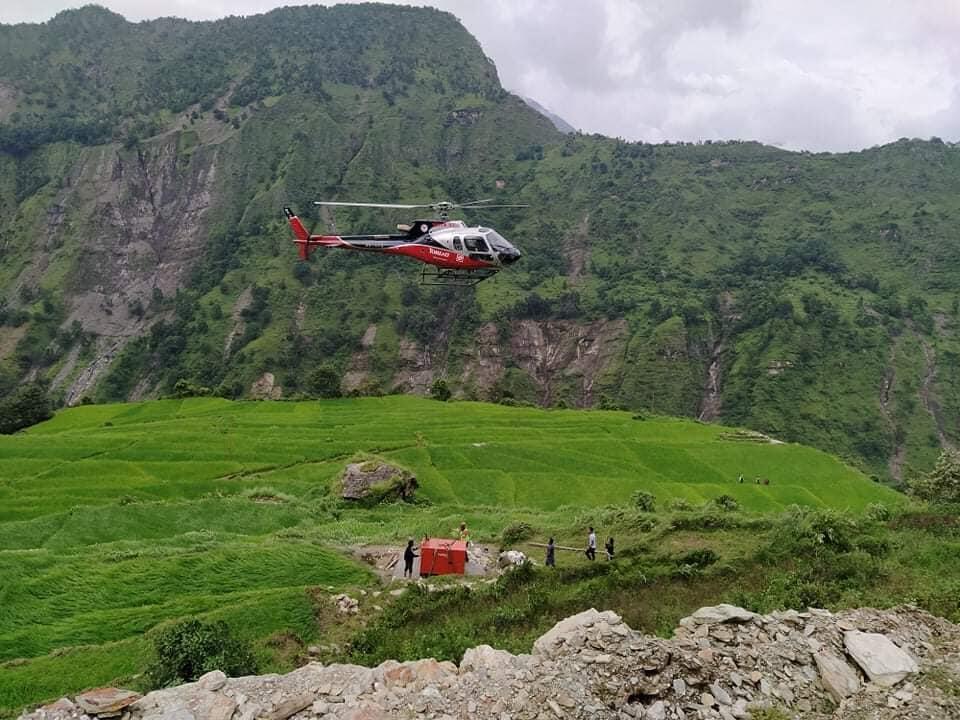 पहिरोले मेसिन सहित आवश्यक उपकरणमा क्षती पुगेपछि अन्धकारमा रहेका स्थानीयलाई तत्काल सडकमार्गबाट ढुवानी सम्भव नभएपछि हेलिकप्टरको प्रयोग गरिएको उपाध्यक्ष विटालुको भनाई छ ।ढुवानीको क्रममा धवलागिरी गाउँपालिका अध्यक्ष थमसरा पुन, मालिका–६ का अध्यक्ष सन्तोष सुबेदी लगायतको उपस्थिती रहेको थियो ।