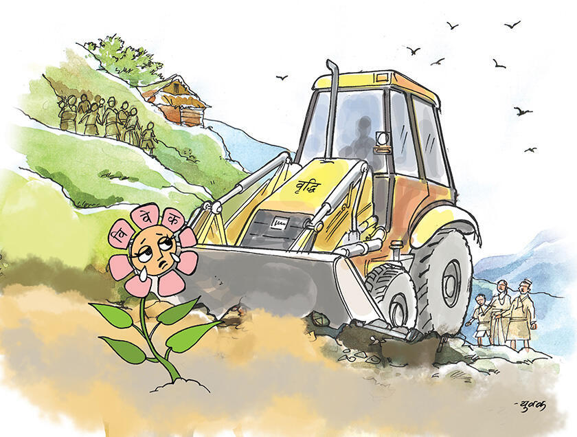 गाउँघरतिर ‘बजेट सक्ने विकास’ भनेर बोलिने डोजर चालक नै इञ्जीनियर बनेर खनिएका मोटरबाटोका कारण वर्षौँ पहिलेदेखिका ऐतिहासिक तथा प्राकृतिक सम्पदा नास भएको बताइएको छ । जीवन्त यस्ता सम्पदाको संरक्षणका लागि सम्बन्धीत पक्षले वास्ता नगरेको स्थानीयवासीको भनाइ छ । विकासका नाममा वातावरणीय प्रभाव मूल्याङ्कन नगरीकन जथाभावी खनिएका मोटरबाटोका कारण बेनी नगरपालिकासहित पाँच गाउँपालिकामा रहेका तीन दर्जन बढी ऐतिहासिक तथा प्राकृतिक सम्पदा नासिएका पाइएको छ ।