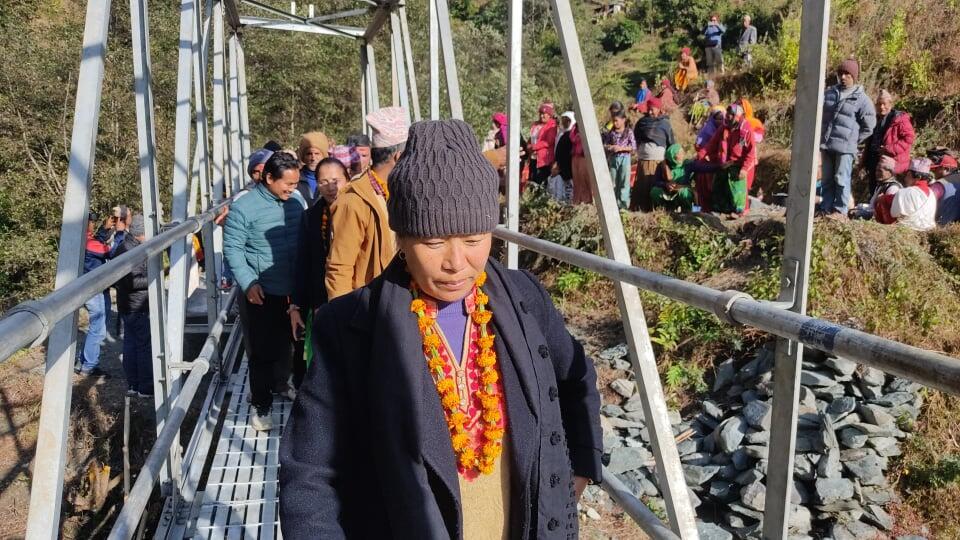 दुर्गम गाउँका बासिन्दालाई आउजाउको लागि सहज बनाउन धवलागिरी-६ मराङ अस्कारे खोलामा बनेको निर्मित पुलको धवलागिरीकी गाउँपालिका अध्यक्ष थमसरा पुन मगरले उद्घाटन गर्नुभएको छ ।