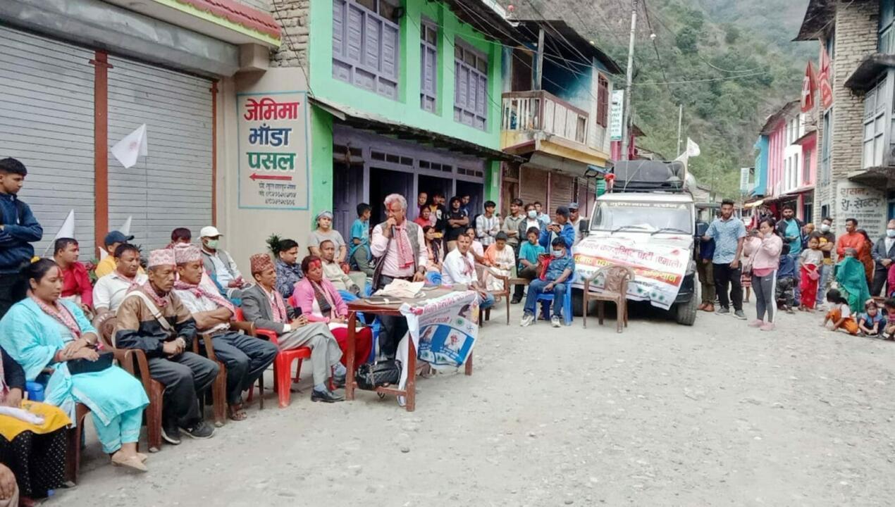 नेपाल कम्युनिष्ट पार्टी (एमाले) बेनी नगर कमिटीको आयोजनामा आज (बिहीबार) बेनी नगरपालिका–५, पुलाचौरको चिप्लेटी र काउलेमा घरदैलो तथा मतदाता भेटघाट कार्यक्रम सम्पन्न भएको छ । यही वैशाख ३० गते हुन गैरहेको स्थानीय तह निर्वाचनलाई लक्षित गरेर एमालेको चुनावलक्षित कार्यक्रम गरिएको हो ।
