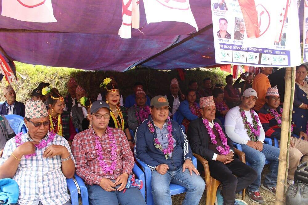 सभामा काँग्रेस–माओवादी गठबन्धनका उमेद्वारहरुले शुसासन, विभेदरहित सेवा र सन्तुलित विकास गर्ने प्रतिवद्धता जनाएका छन् । नेपाली काँग्रेसका नेता तथा संविधानसभा सदस्य रेशमबहादुर बानियाले संविधान मिचेर संसद बिघटन गर्ने, अराजकता मच्चाउने, भ्रष्ट्राचार र बेतिथि निम्त्याउने ओली प्रवृतिका विरुद्ध बनेको गठबन्धनका उमेद्वारलाई जिताउन अपिल गर्नुभयो ।
