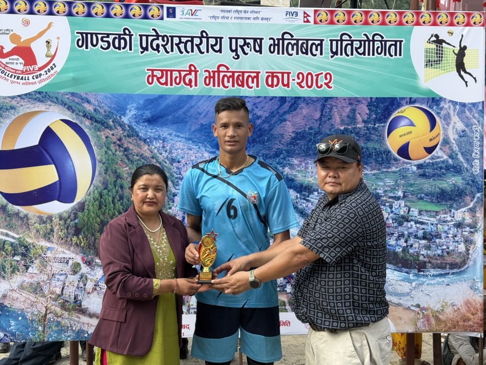 म्याग्दीमा जारीे गण्डकी प्रदेशस्तरीय अन्तर जिल्ला खुल्ला पुरुष भलिबल प्रतियोगितामा म्याग्दी, बागलुङ, तनहुँ र स्याङ्जा सेमिफाइनलमा प्रवेश गरेको छ । सोमबार सम्पन्न खेलमा म्याग्दीले नवलपुरलाई ३–० को सोझो सेटमा पराजित गरेको छ । बागलुङले मुस्ताङ जिल्लालाई ३–० को सोझो सेटमै पराजित गरेको हो ।