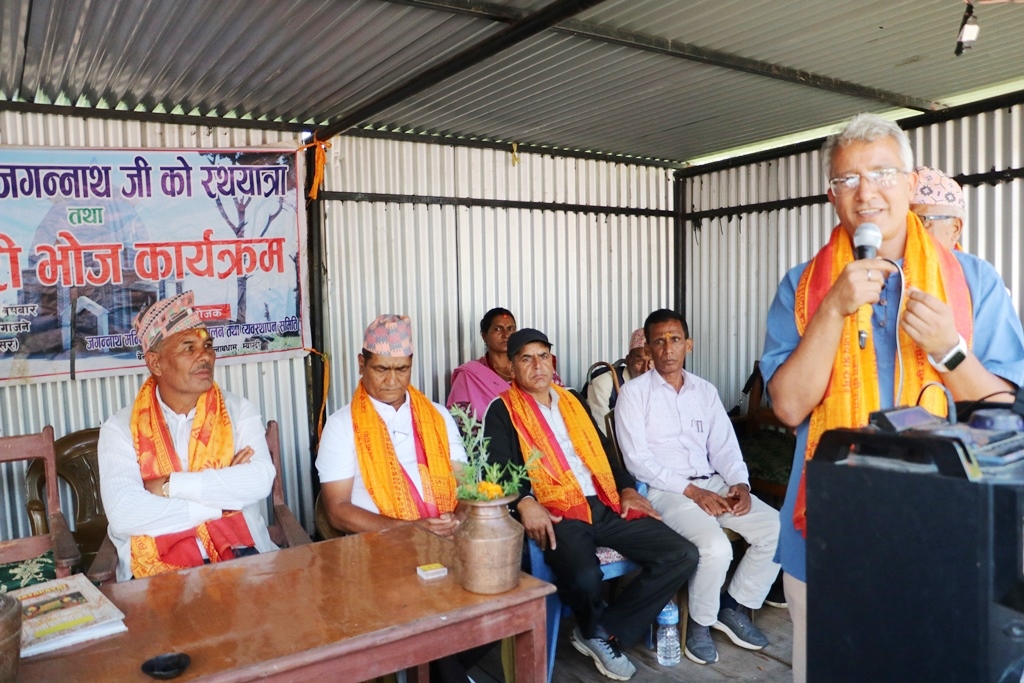 रथयात्रा कार्यक्रममा प. पराजुलीले प्रवचनसहित स्वस्तीवाचन गर्नुभएको थियो । जगन्नाथ मन्दिरको हरेक वर्ष श्रावण शुक्लपक्ष द्वादशी तिथिको अवसर पारेर रथयात्रा तथा सरकारी भोजको कार्यक्रम आयोजना गरिँदै आएको छ । सरकारी भोजको समेत आयोजना गरिएको रथयात्रा कार्यक्रममा ४१ पाथी चामलको खिर पकाएर सहभागी भक्तजनलगायत सबैलाई खुवाइएको थियो भने जगन्नाथ आमा समूह र युवा क्लबले स्वयंसेवा गरेका थिए ।