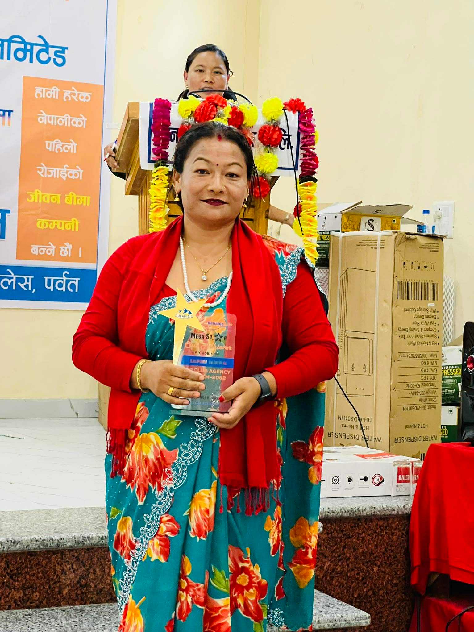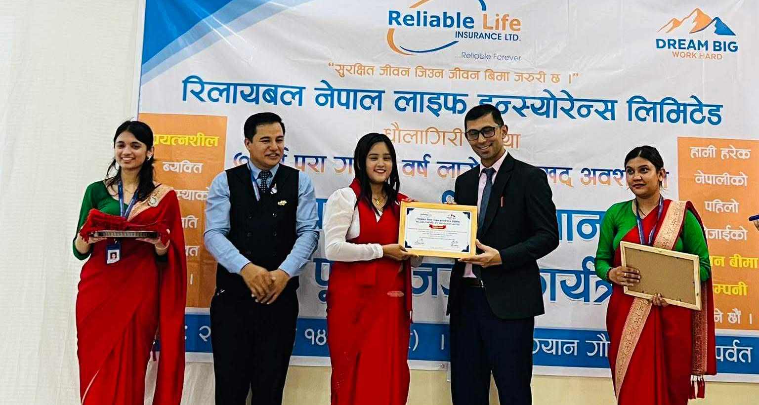 यसैबीच प्रदेश प्रथम एमडीआरटी श्री यसिन रोका ,करोडपति एमडीआरटी बिना खड्का, करोडपति नीलप्रसाद आचार्य, करोडपति निशान कटुवाल ,मेघास्टार एमडीआरटी कल्पना बरुवाल, मेगा स्टार एमडीआरटी नवीन पौडेल, हाफ करोडपति एमडीआरटी सञ्जु बरुवाल, हाफ करोडपति एमडीआरटी जमुना श्रीस लगाएत बिभिन्न बिधामा १००+ एजेन्सि ज्यूहरुलाई सम्मान गरिएको थियो। उक्त कार्यक्रम सञ्चालन बाग्लुङ शाखा बिएम डिल कुमारी पुन ले गर्नुभयो भने उक्त कार्यक्रमको अध्यक्षता धौलागिरी प्रमुख देवेन्द्र घिमिरेले गर्नुभयो कार्यक्रमको प्रमुख अतिथि गण्डकी प्रदेश प्रमुख सरोज अधिकारीले गर्नुभएको थियो।