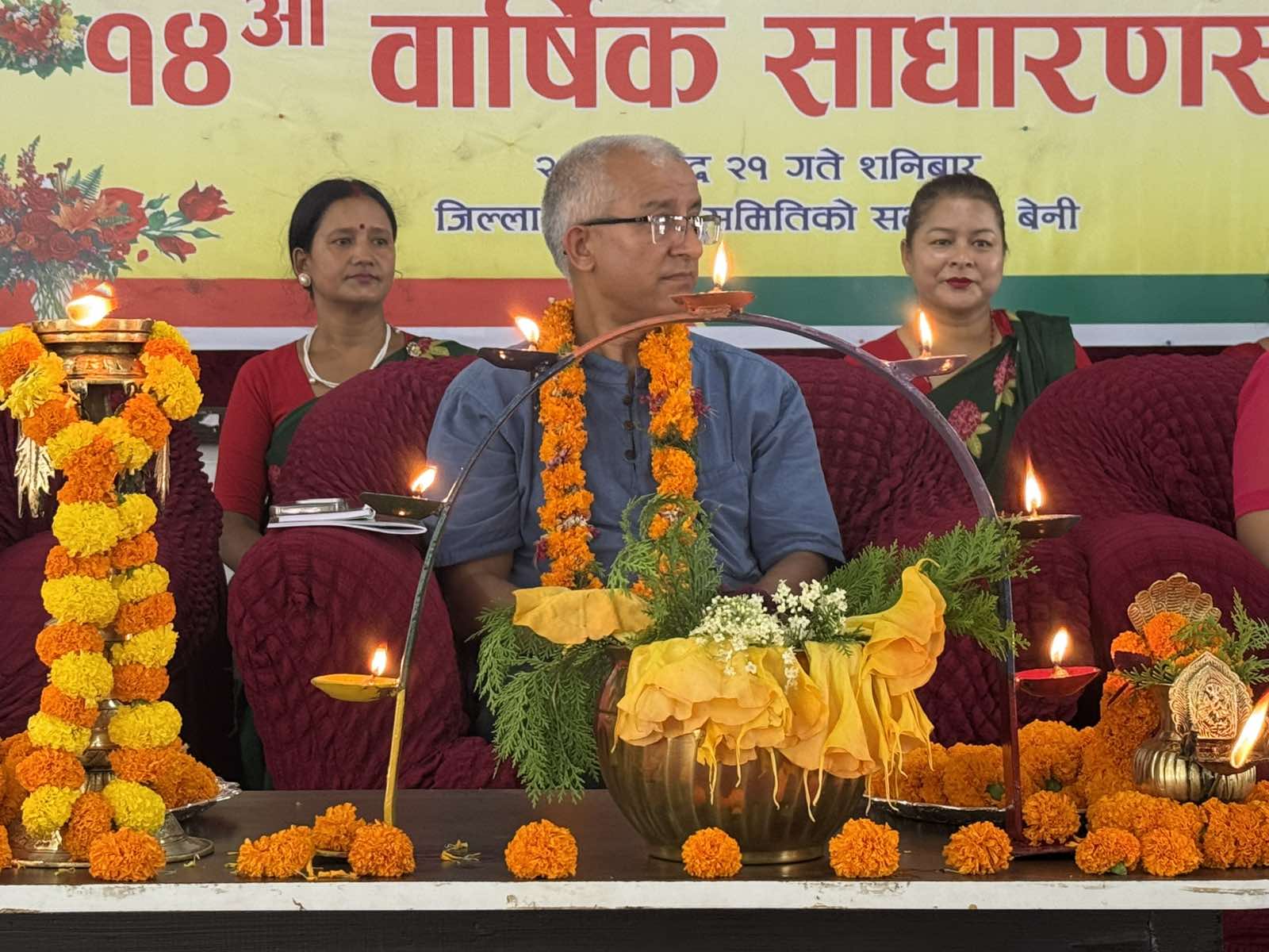 बेनी नगरपालिका–८ मा रहेको दिदीबहिनी बचत तथा ऋण सहकारी संस्थाको १४ औ वार्षिक साधारणसभा शनिबार सम्पन्न भएको छ । साधारणसभाको उद्घाटन गर्दै बेनी नगरपालिकाका प्रमुख सुरत केसीले बचत गर्ने बानीले दुख अप्ठ्यारो पर्दा सजिलो हुने बताउनुभयो । उहाँले समाजमा विद्यमान विभेदको समस्या हटाउनका लागि आर्थिक शसक्तिकरण आवश्यक रहेको बताउनुभयो ।