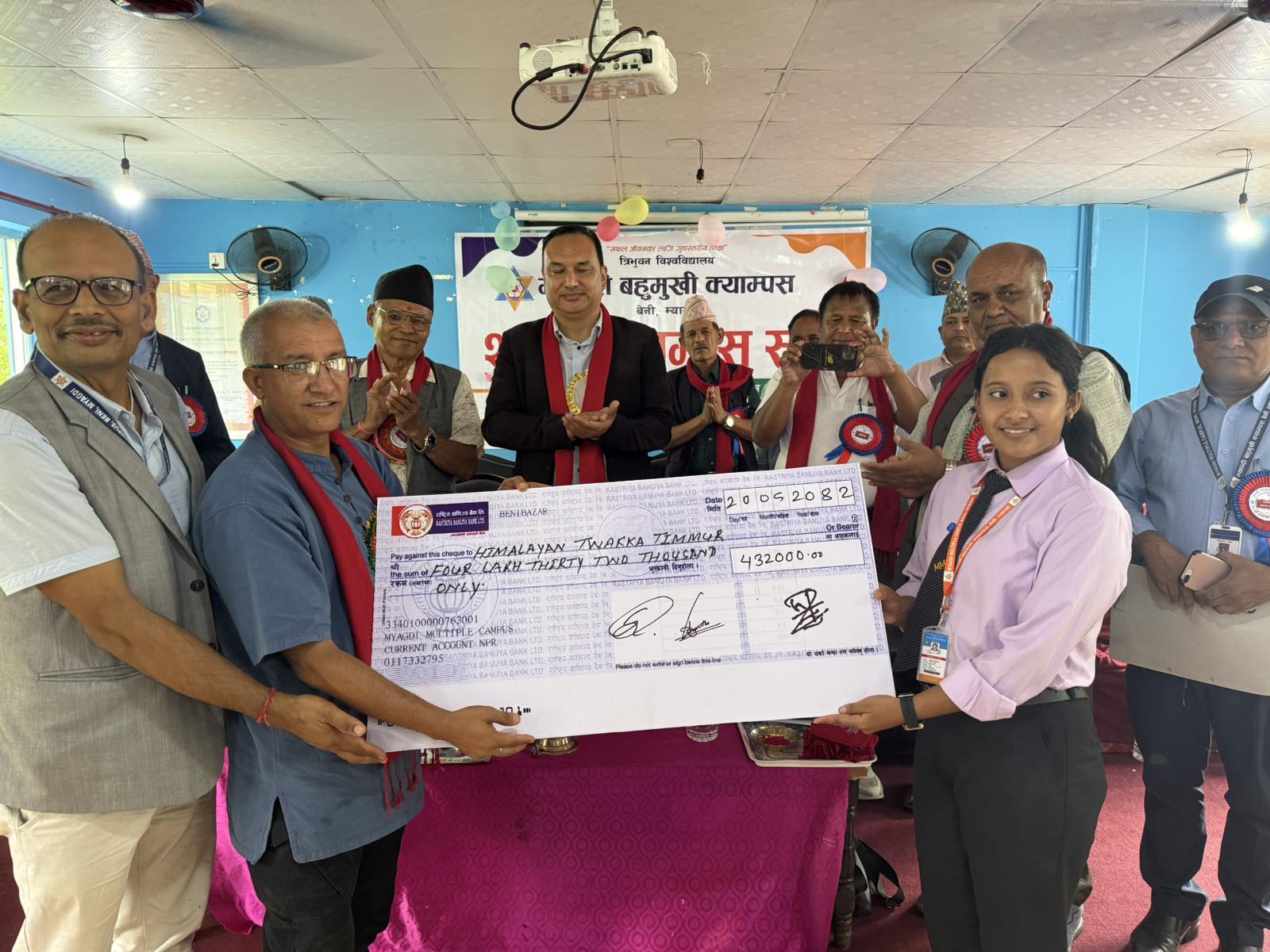 सोही कार्यक्रमको अवसरमा क्याम्पसको तर्फदेखि विश्वविद्यालय अनुदान आयोगबाट उद्यमशिलता विकास कार्यक्रमको लागि छनोट भएको हिमालयन ट्वाक्क टिम्मुर परियोजनाका प्रस्तावक एवं क्याम्पसको बिएड तेस्रो वर्षमा अध्ययनरत श्रेया श्रेष्ठलाई बिनाव्याज ऋण अन्तर्गतको पहिलो किस्ताको रकम बिऊ पुँजीस्वरुप चारलाख ३२ हजार रुपैयाँको चेक हस्तान्तरण गरिएको क्याम्पस प्रमुख सुवेदीले बताउनुभयो ।
