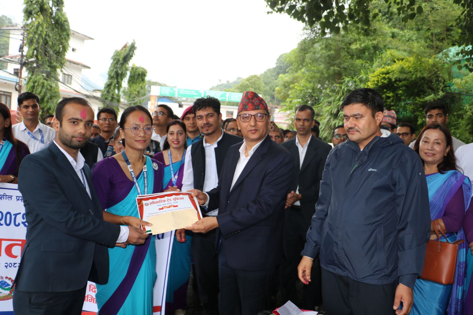 प्रतियोगितामा प्रथम, द्धितिय, तृतिय र सान्त्वनालाई क्रमश १५ हजार, १२ हजार, ९ हजार र ४ हजार नगद, प्रमाणपत्र वितरण गरिएको छ । निजामति सेवा दिवसको अवसरमा आइतबार आयोजित कार्यक्रममा प्रमुख जिल्ला अधिकारी बद्रीप्रसाद तिवारी,कर्मचारी मिलन केन्द्रका अध्यक्ष एवम् बेनी नगरपालिकाका बरिष्ठ प्रशासकीय अधिकृत यूवराज थापा, निजामति कर्मचारीका कोषाध्यक्ष कोषाध्यक्ष सोमबहादुर केसीले पुरस्कार वितरण गरेका थिए । प्रतियोगितामा १५ टिमको सहभागिता रहेको थियो ।