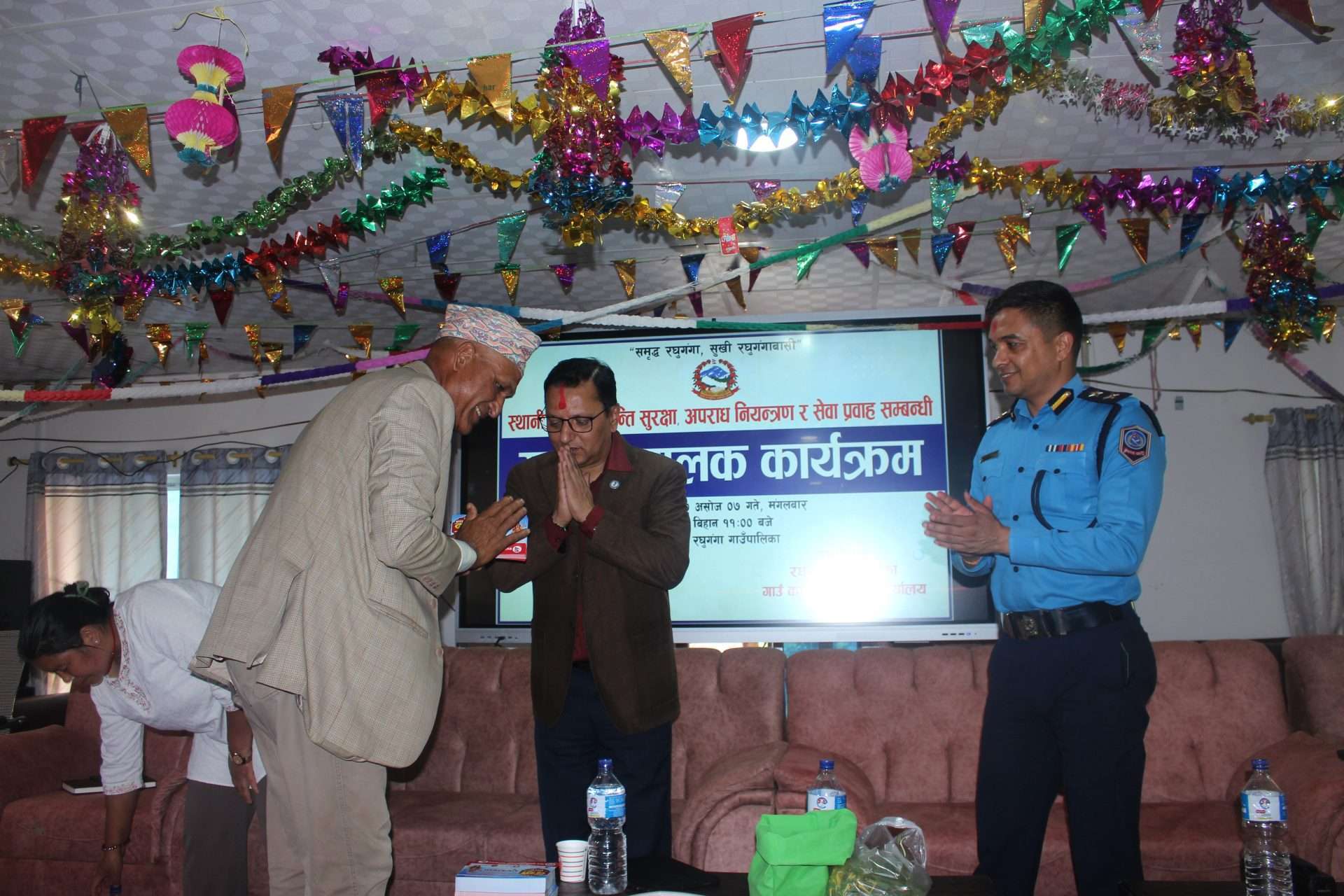 स्थानीय तहमा शान्ति सुरक्षा, अपराध नियन्त्रण र सेवा प्रवाहलाई प्रभावकारी बनाउन सबै पक्षको सक्रियता हुनुपर्ने मंगलबार रघुगंगा गाउँपालिकाको केन्द्र मौवाफाँटमा आयोजित एक कार्यक्रमका बक्ताले जोड दिएका छन् ।