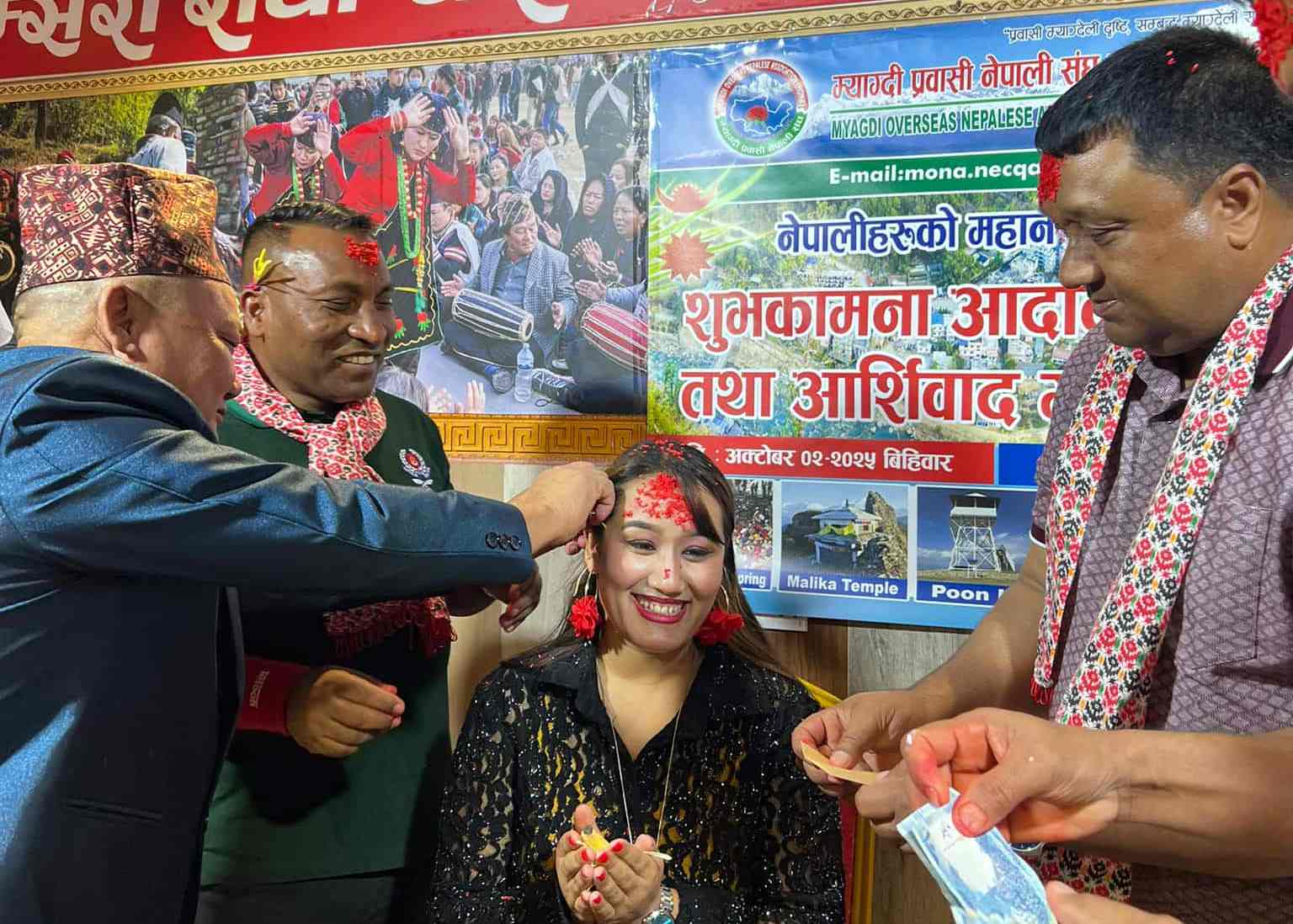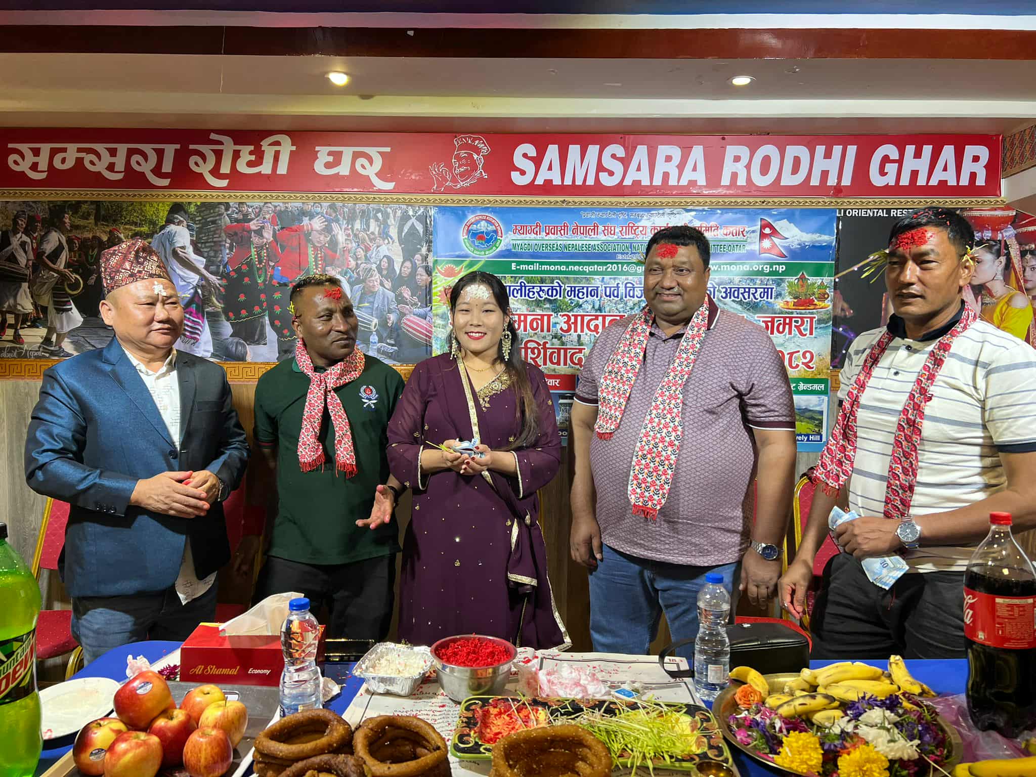म्याग्दी प्रवासी नेपाली संघ राष्ट्रिय कार्यकारी समिति मोना कतारले दशैैंको अवसरमा शुभकामना आदानप्रदान तथा दशैं टिका ग्रहण कार्यक्रममा हर्षोल्लासका साथ सम्पन्न गरेको छ ।