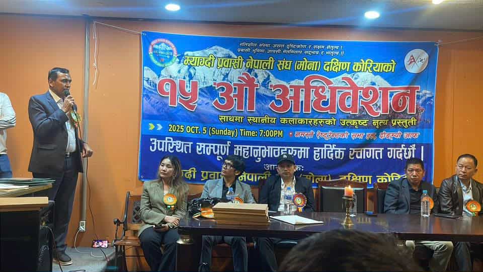 म्याग्दी प्रवासी नेपाली संघ मोना दक्षिण कोरियाको १५औं अधिवेशनबाट बेनी नगरपालिका–५, डडुवाका दिनेश कार्कीको अध्यक्षतामा नयाँ कार्यसमिति चयन भएको छ । आईतवार सम्पन्न भएको अधिवेशनबाट बरिष्ठ उपाध्यक्ष गणेश बोगटी,उपाध्यक्ष राहुल छन्त्याल,महासचिव प्रेम भण्डारी,सचिव अंकित पुन मगर,कोषाध्यक्ष भगवान कार्की रहनुभएको छ ।