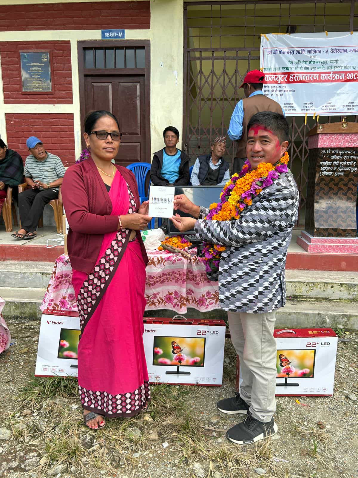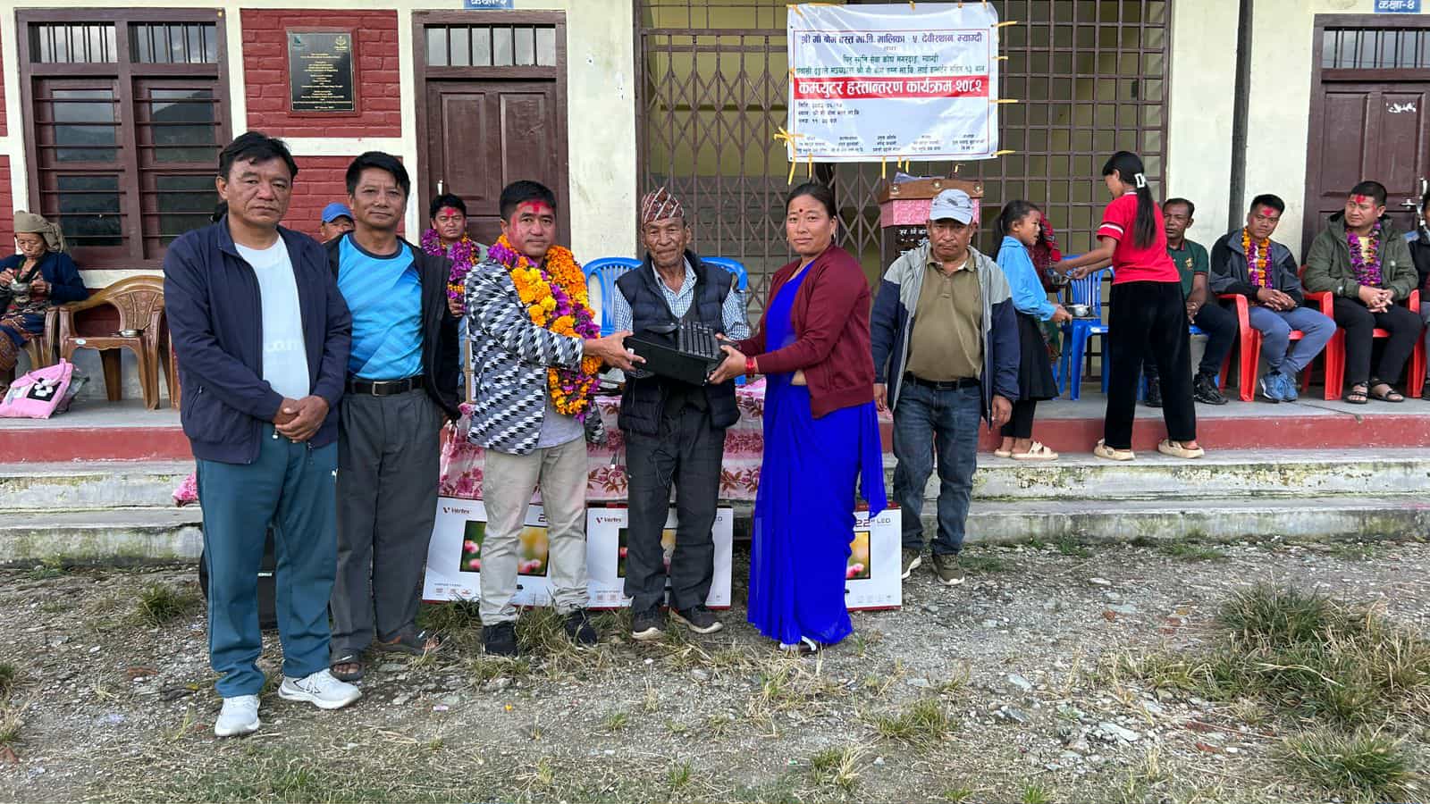 विद्यालय ब्यवस्थापन समितिका अध्यक्ष तुलप्रसाद बुढाथोकीको अध्यक्षतामा भएको सहयोग हस्तान्तरण कार्यक्रमको स्वागत कोषका कोषाध्यक्ष रासमति पुन बुढा,सञ्चालन कोषका सचिव रन बहादुर फगामीले गर्नुभएको थियो ।