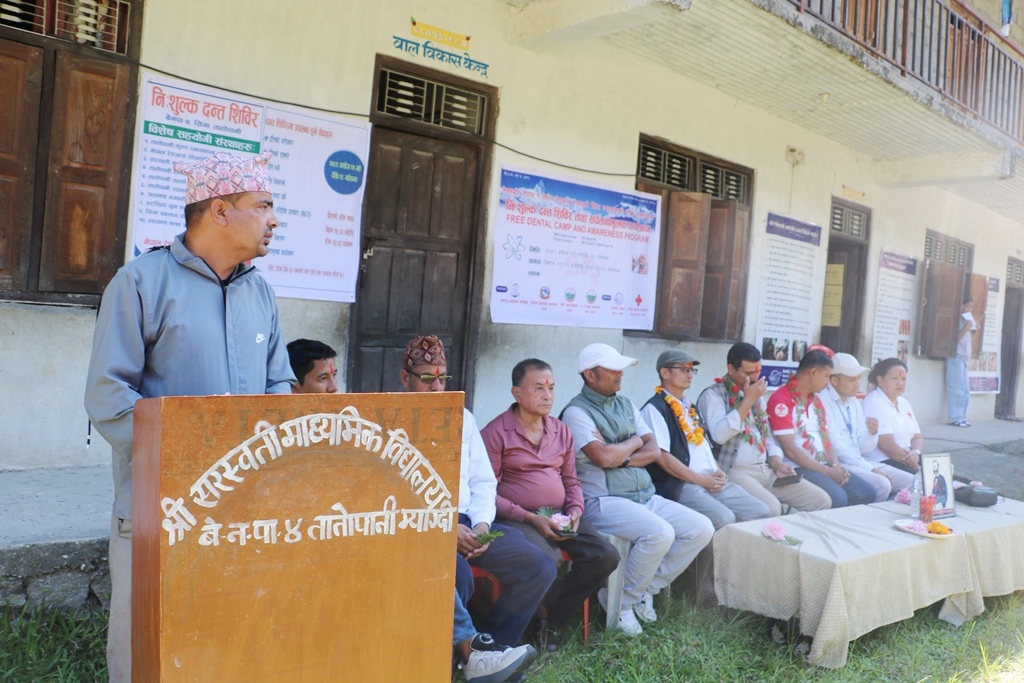 म्याग्दीको बेनी नगरपालिका ४ तातोपानीको सरस्वती माध्यमिक विद्यालयको प्राङ्गणमा शुक्रवारदेखि दन्त शिविर तथा सचेतनामूलक कार्यक्रम सुरु भएको छ । नेलम्बो नेपाल र नेपाल रेडक्रस सोसाइटी सिङ्गा उपशाखाको संयुक्त आयोजनामा दन्त शिविर सम्बन्धी कार्यक्रम सञ्चालन गरिएको हो ।
