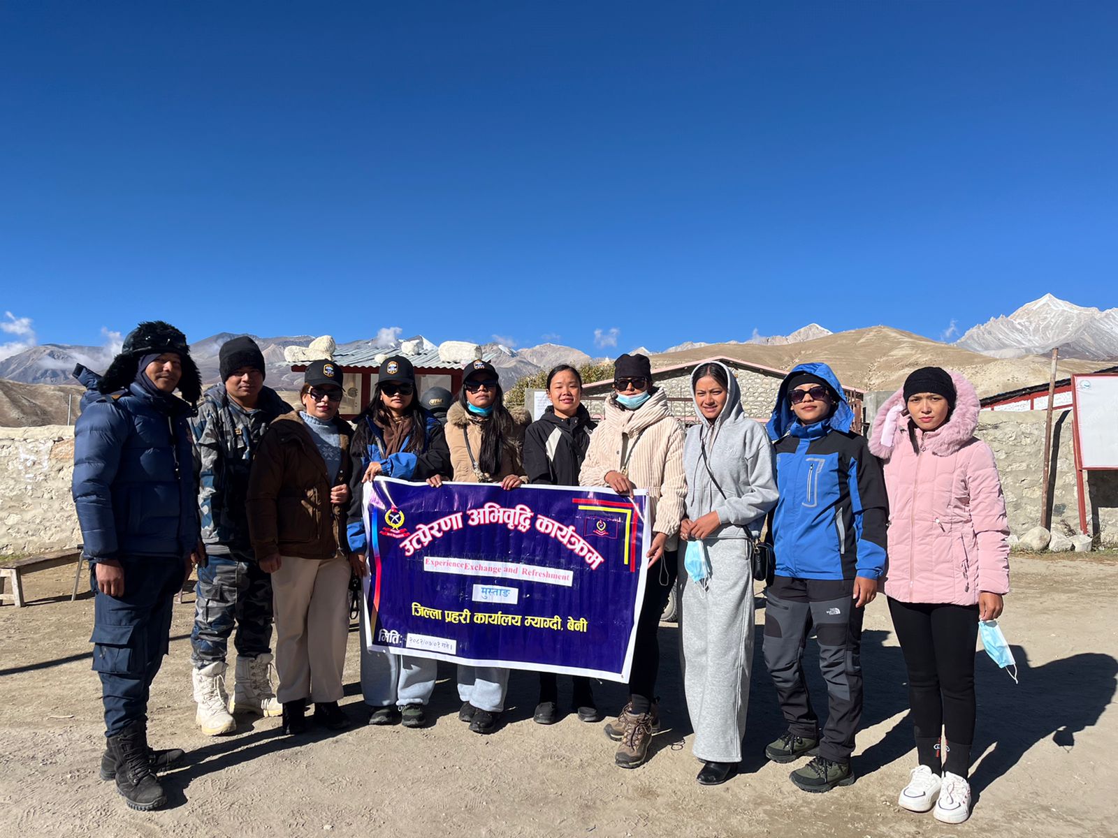 तीन दिनको उत्प्रेरणासहित मुस्ताङको थासाङ, घरपझोङ, वारागुङ मुक्तिक्षेत्र, लोघेकर दामोदरकुण्ड रलोमान्थाङ गाउँपालिकामा रहेको प्रहरी चौकीका कार्यरत प्रहरीसँगको अन्तरक्रियात्मक कार्यसहति जिल्ला प्रहरी कार्यालय मुस्ताङका प्रहरी नायव उपरीक्षक छिरिङ किप्पा लामाबाट हिमाली क्षेत्रमा हुने उद्धारमा प्रहरीले खेल्नुपर्ने भूमिकाको विषयमा जानकारी लिएको जिल्ला प्रहरी कार्यालय म्याग्दीकी मुद्दा फाँटमा कार्यरत प्रहरी जवान जुना विकले बताउनुभयो । विकले भन्नुभयो, ‘‘हिमाली क्षेत्रमा हुने खोज तथा उद्धार र दुर्घटनाको विवरण सङ्कलनका बारेमा राम्रो जानकारी लिने अवसर मिल्यो, भ्रमण निकै उपलब्धीमुलक भयो ।’’