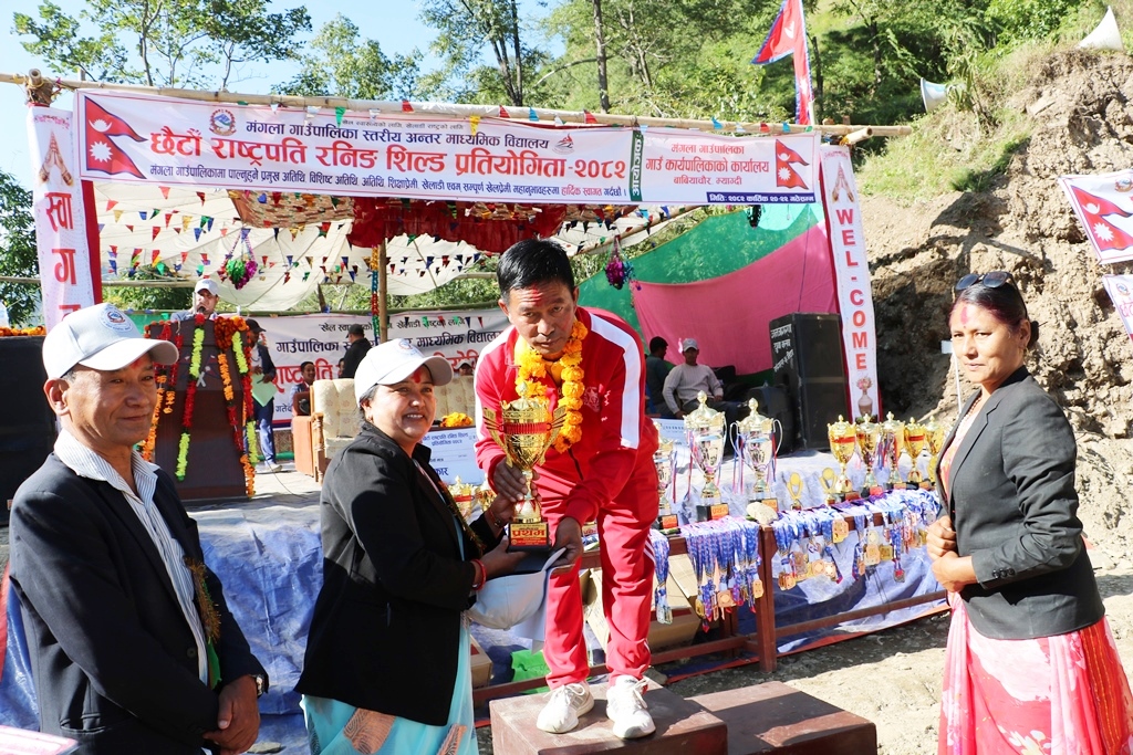 ‘खेल स्वास्थ्यका लागि, खेलाडी राष्ट्रका लागि’ भन्ने मूल नारासहित मंगला गाउँपालिकामा बिहीबारदेखि छैटौँ राष्ट्रपति रनिङ शिल्ड प्रतियोगिता सुरु भएको छ । मंगला गाउँपालिकाद्वारा २ नम्बर वडा लाम्पाटास्थित खेलमैदानमा आयोजित छैंटौँ संस्करण अन्तर्गत यस वर्षको प्रतियोगिता सञ्चालन गरिएको हो ।
