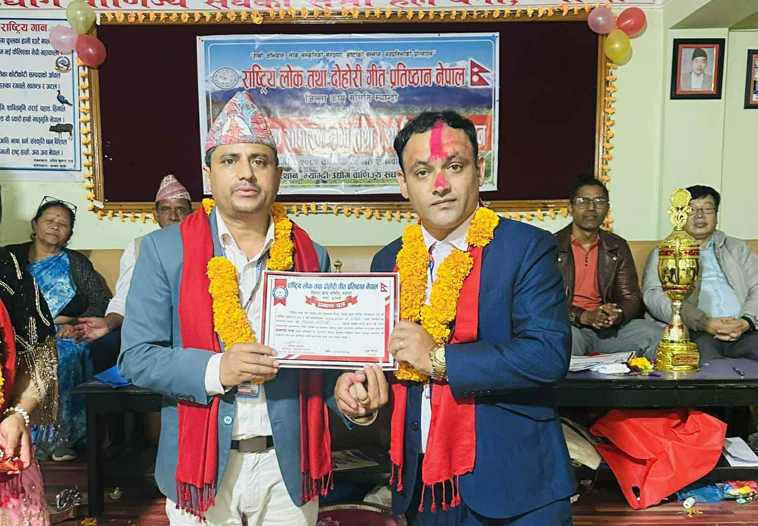 नवनिर्वाचित कार्य समितिहरुलाई राष्ट्रिय लोक तथा दोहोरी गीत प्रतिष्ठान नेपालका केन्द्रिय सचिव तथा निर्वाचन मण्डल संयोजक जीवन दाहालले पद तथा गोपनियताको सपथ ग्रहण गराउनुभएको थियो ।