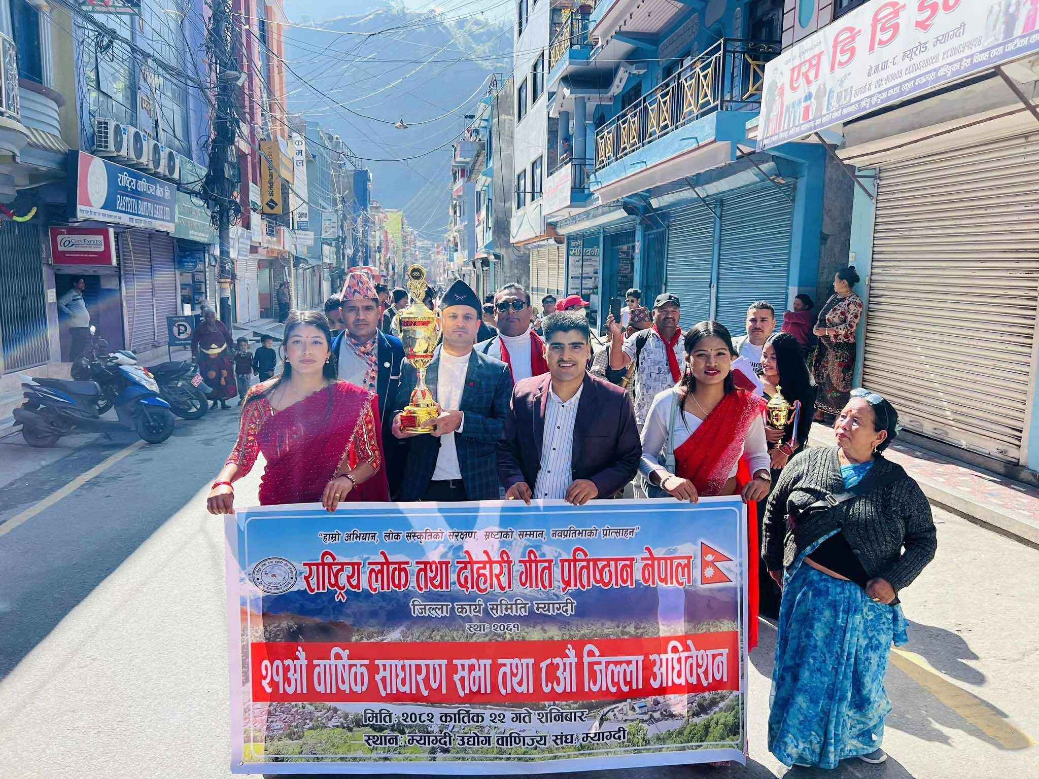 साधारणसभा तथा अधिवेशनको उद्घाटन गर्दै प्रमुख अतिथि बेनी नगरपालिकाका मेयर सुरत केसीले म्याग्दी जिल्ला लोक संगीतको उर्वर भूमी भएको बताउनुभयो । कलाकारले आफ्नो क्षेत्रबाट समेत जिल्लालाई चिनाउन सक्ने र चिनाइरहेको बताउँदै संस्थागत विकासका लागि नगरपालिकाले सहयोग गर्ने मेयर केसीको भनाई छ । सोही अवसरमा राष्ट्रिय लोक तथा दोहोरी गीत प्रतिष्ठान नेपालका केन्द्रिय सचिव दाहालले स्थानीय तहले संस्थालाई जग्गा ब्यवस्थापनमा सघाउन आग्रह गर्नुभयो।