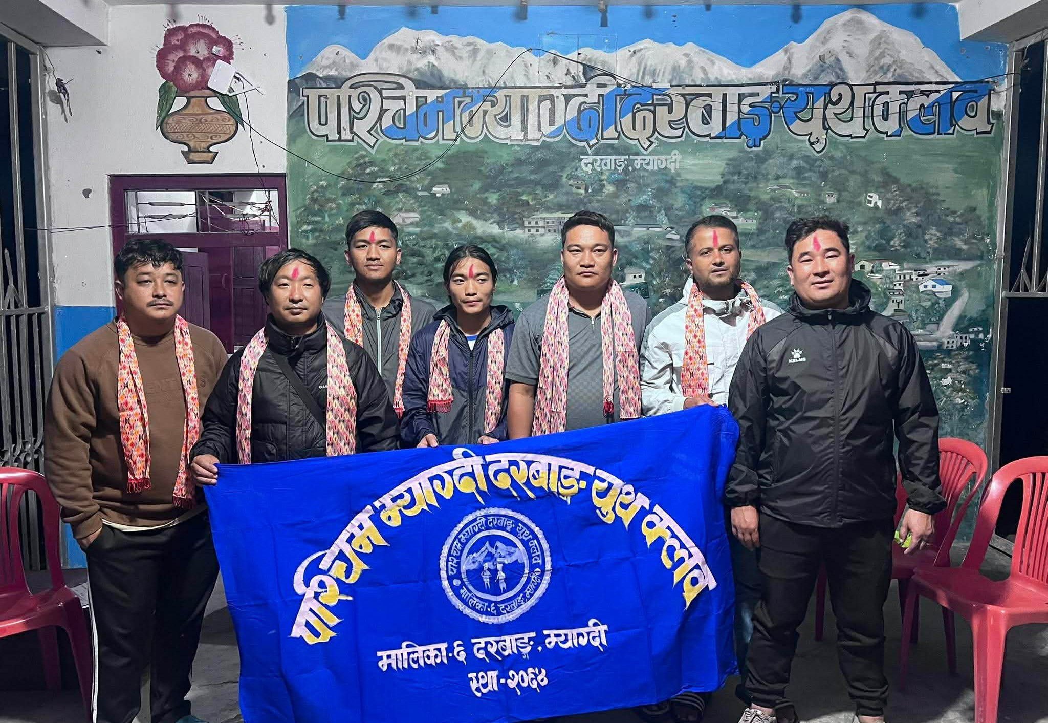 म्याग्दीको मालिका गाउँपालिका–६,दरबाङ स्थित खेलकुद सँगै सामाजिक क्रियाकलापमा सक्रिय पश्चिम म्याग्दी दरबाङ युथ क्लबको छैटौं अधिवेशनबाट अध्यक्षमा नगेन्द्र मल्ल चयन हुनुभएको छ । सोमबार क्लबको सभाहलमा सम्पन्न अधिवेशनबाट अध्यक्ष पदमा मल्ल सर्वसम्मत चयन हुनुभएको हो । यस अघि क्लबको अध्यक्ष खिमबहादुर पुन हुनुहुन्थ्यो । क्लबको उपाध्यक्षमा विश्वास पुन ,सचिवमा बिमल शर्मा ,सहसचिवमा बबिन फगामी ,कोषाध्यक्षमा विकास राम्जाली ,सह–कोषाध्यक्षमा बिशेष बुढा चयन हुनुभएको छ ।