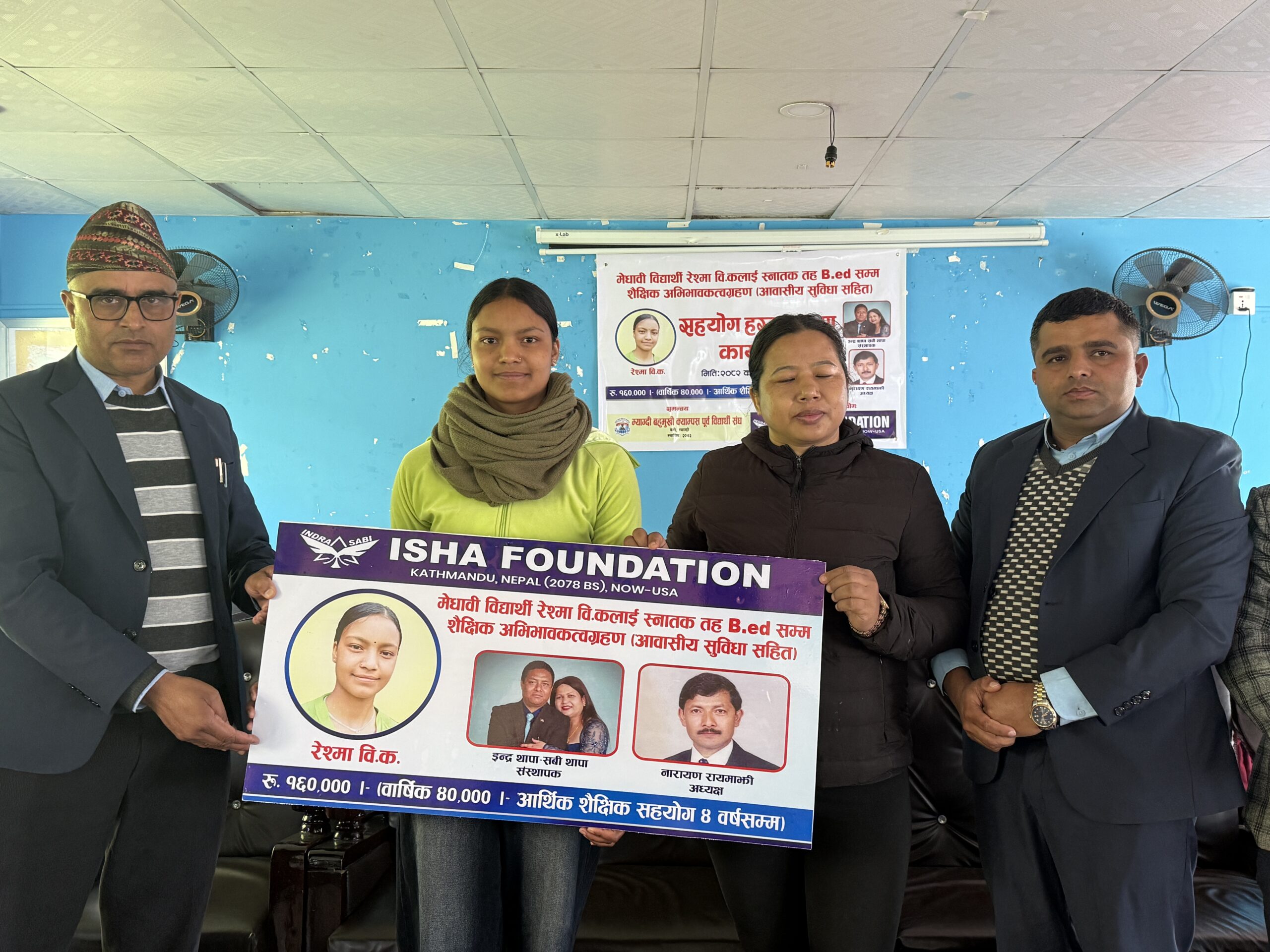 म्याग्दी बहुमुखी क्याम्पस पूर्व विद्यार्थी संघको आयोजनामा इशा फाउण्डेशनकी म्याग्दीकी प्रतिनिधि चन्द्रा घलेले उक्त सहयोग हस्तान्तरण गर्नुभएको थियो । सहयोग हस्तान्तरण कार्यक्रममा प्रमुख अतिथि क्याम्पस प्रमुख श्रीधर सुबेदीले शैक्षिकसँगै अतिरिक्त क्रियाकलापमा समेत अब्बल विद्यार्थीलाई गरिएको सहयोगले स्नातकतहसम्म आवासीय, स्टेशनरी, शैक्षिक शुल्क सहित अन्य खर्चमा सहयोग पुग्ने बताउनुभयो ।‘क्याम्पसले पनि विभिन्न शिर्षकमा क्षमताको आधारमा छात्रबृत्ति उपलब्ध गराउँछ,सबैको हातेमालोले विद्यार्थीलाई अगाडी बढ्न सहज हुन्छ’ क्याम्पस प्रमुख सुबेदीले भन्नुभयो ।