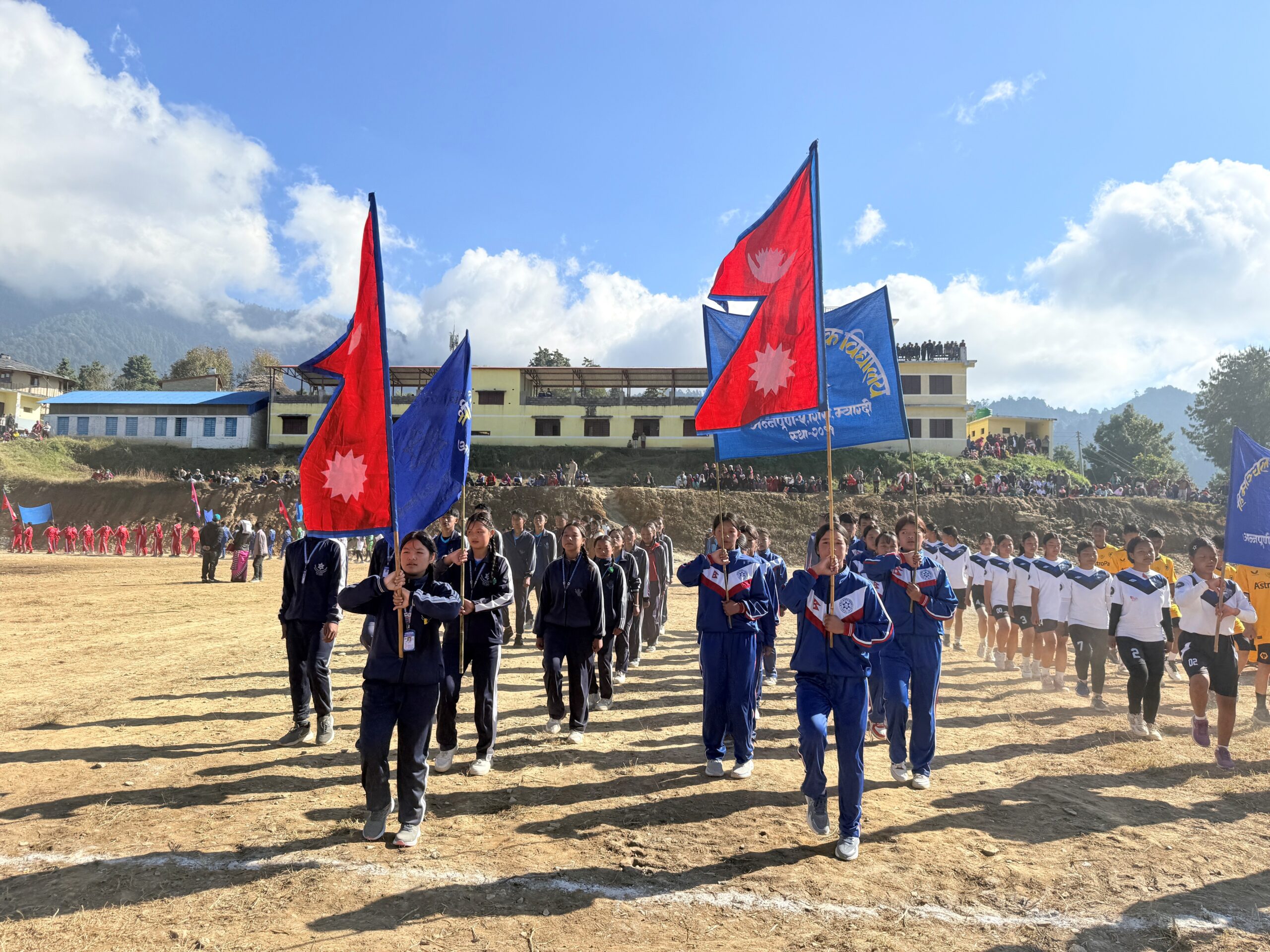 प्रतियोगिताको औपचारिक उद्घाटन हुनुपूर्व सहभागी विद्यालयहरु, स्थानीय पुख्र्यौली समूहको नाचगान र नौमती बाजागाजासहित ¥याली गरिएको थियो भने विद्यालयहरुबीच भएको मार्चपास प्रतियोगिता प्रभा मावि नारच्याङ उत्कृष्ट घोषित भएको छ ।