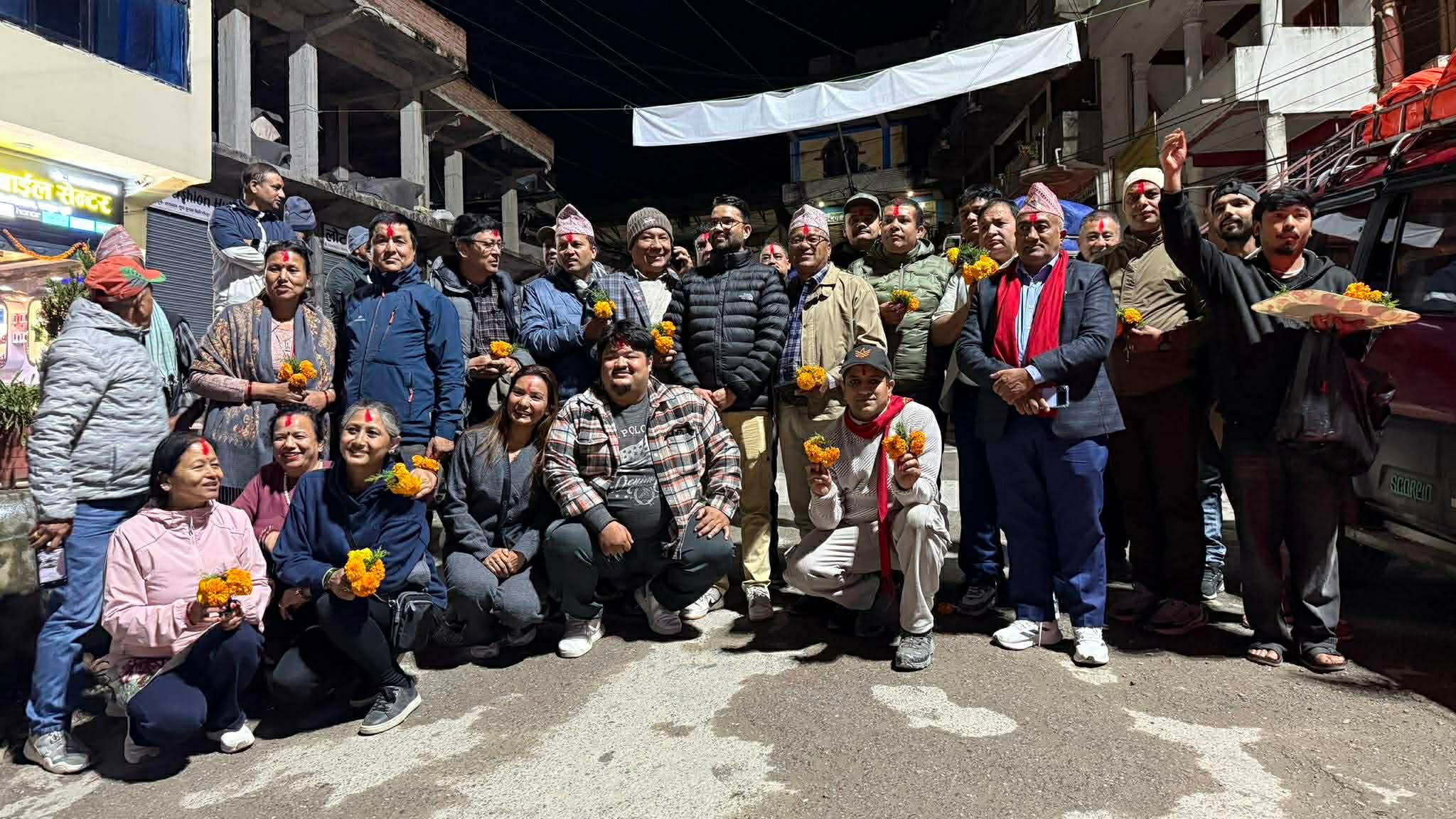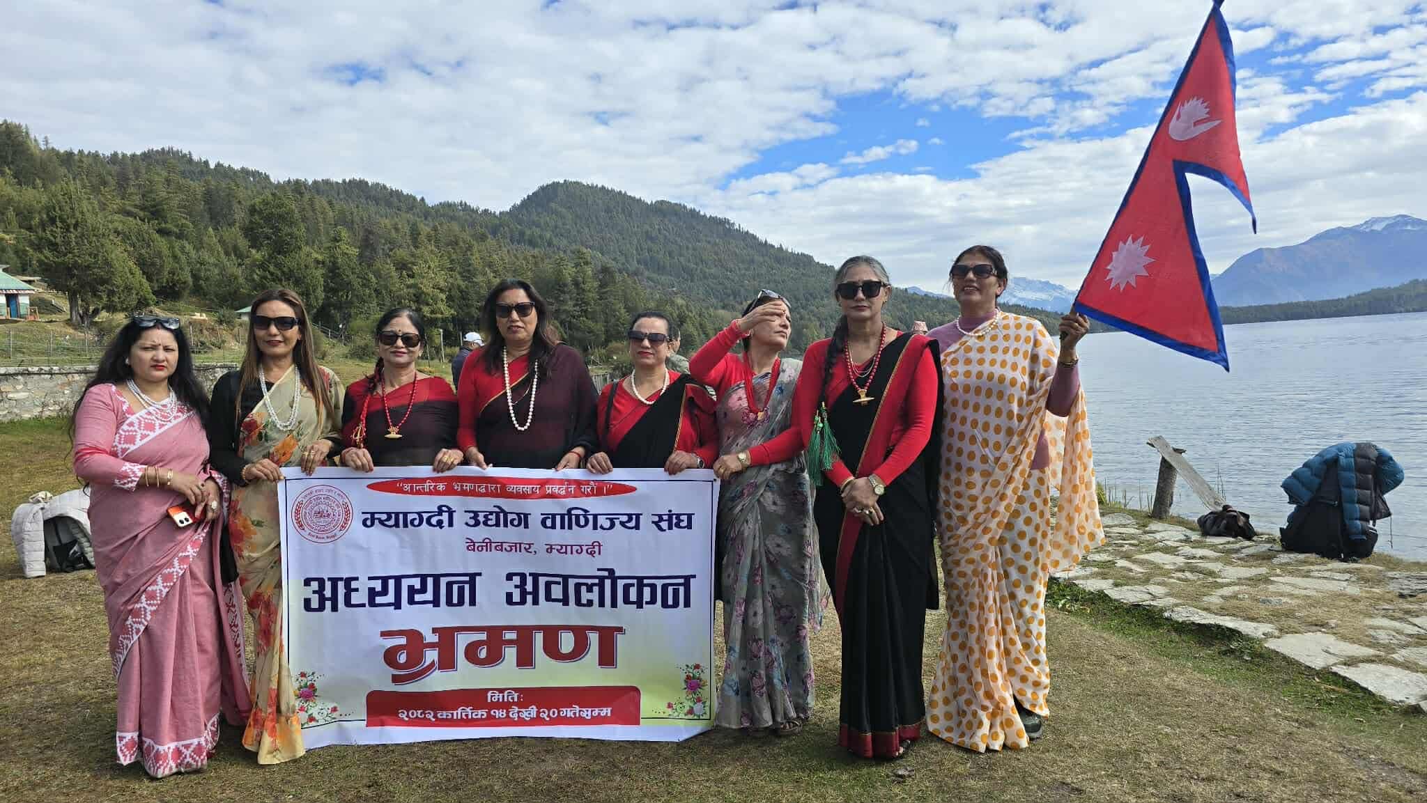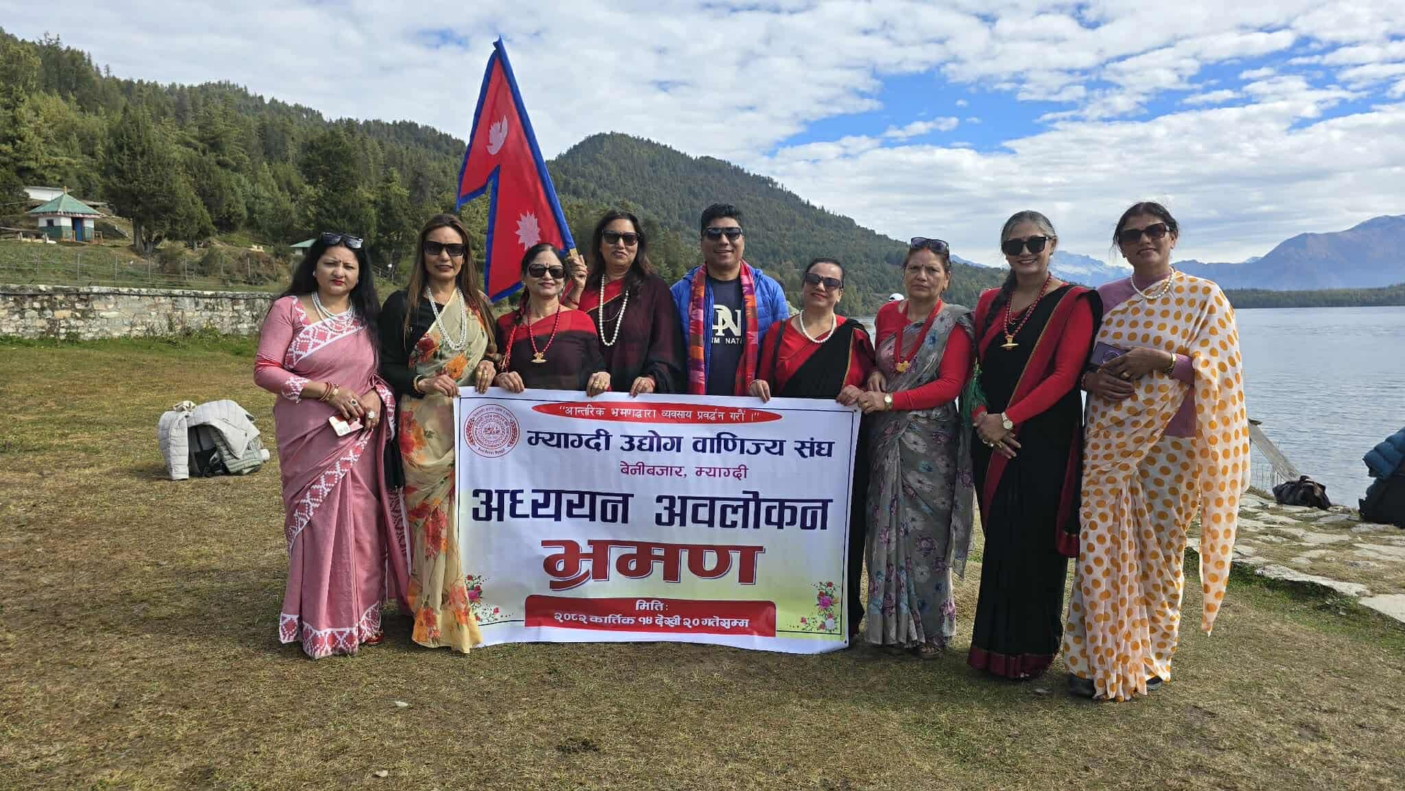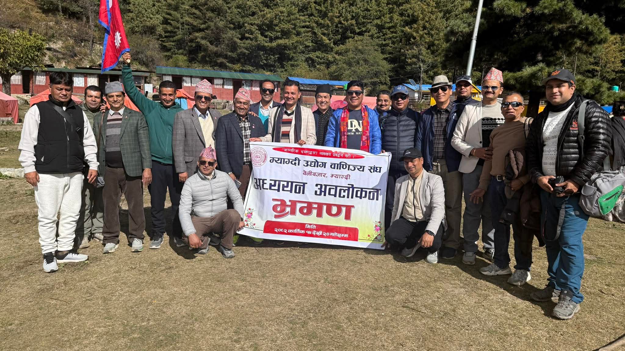म्याग्दी उद्योग वाणिज्य संघका अध्यक्ष श्री सु्विन श्रेष्ठको संयोजकत्वमा निवर्तमान र पूर्व अध्यक्षहरु, कार्यसमितिका पदाधिकारी र सदस्यहरु, महिला उद्यम विकास समितिका सभापति लगायतका समितिका सदस्यहरु, आमन्त्रित सदस्यहरु, बजार इकाईका प्रतिनिधीहरु, वस्तुगत संघका प्रतिनिधीहरु, नेपाल पत्रकार महासंघ म्याग्दी शाखाका अध्यक्ष सहित ३५ जना र ५ ओटा स्कोरपियो गाडिमा चालक सहित ४० जनाको टोलिलाई कार्तिक १४ गते बिहान म्याग्दी उद्योग वाणिज्य संघका द्धितिय उपाध्यक्ष श्री अमृत बानियाँ, कोषाध्यक्ष श्री सुमन श्रेष्ठ, सदस्य श्री हिमाल श्रेष्ठ, महिला उद्यम विकास समितिका उपसभापति श्री दिलमाया घताने, कोषाध्यक्ष श्री गिता रिजाल, म्याग्दी उद्योग वाणिज्य संघका कार्यालय प्रमुख श्री दिलिप पुन लगायतका साथीहरुले भ्रमण टोलीलाई शुभ यात्राको शुभकामना सहित बेनीबजारको मुटु मानिने विरेन्द्र चोकबाट विदाई गर्नुभएको थियो ।