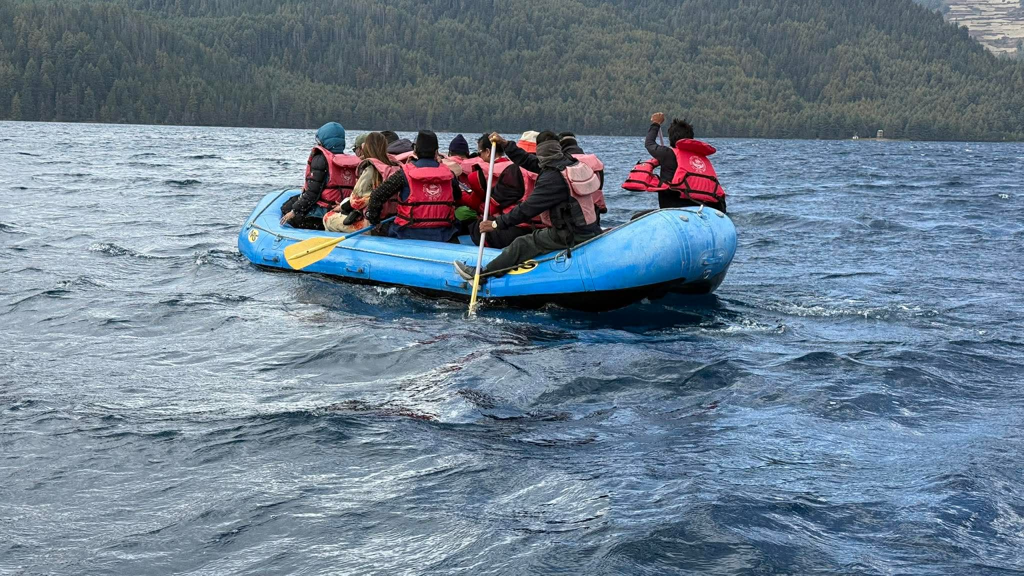 फर्किने बेलामा धेरै जना बोटिंग गरी फर्किने हुनाले टिकट काउन्टरमा भिडभाड हुने रहेछ । हाम्रो अलि ठुलो टोली रहेकोले हामीले अलि ढिला गरी मात्रै बोटिंग गर्ने अवसर पायौ । सबै साथीहरु लाईफ ज्याकेट पहिरियर ३ ओटा बोटिंगमा सँगै राराको पारी किनारलाई बिदा गर्दैै वारी किनारतर्फ अगाडि बढ्यौ । तिनै बोटिंगमा गितका स्वरहरु गुञ्जदै राराको कञ्चन पानीलाई सुम्सुम्याउदै रारा तालको मध्यभागमा पुगेका थियौ । समय बिहानको ११ः१५ भैरहेको थियो । रारा तालले आफ्नो तालको रंग फेर्दै हामीलाई जिस्क्याईरहेकी थिईन । सोही समयमा घाम बादलभित्र छिर्यो र हामीले केही अध्यारोको महशुस गर्दै थियौ । चिसो हावाले गाला, कान, नाक, घाँटी र टाउकोलाई पिटीरहेको थियो । तैपनि हामी सबैले त्यो चिसोका प्रवाह नगरी रारा ताललाई अवलोकन गर्दै अगाडि बढिरहेका थियौ । केही समय पश्चात् विस्तारै छालको महशुस पनि गर्दै थियौ ।