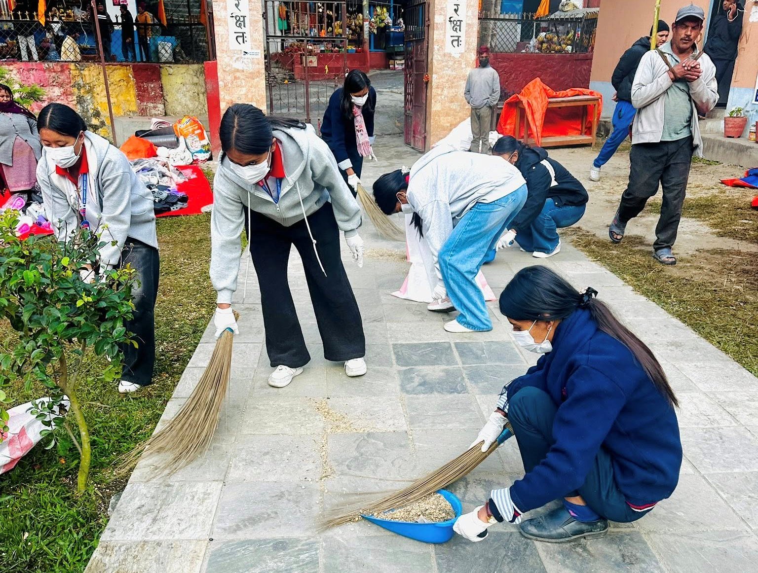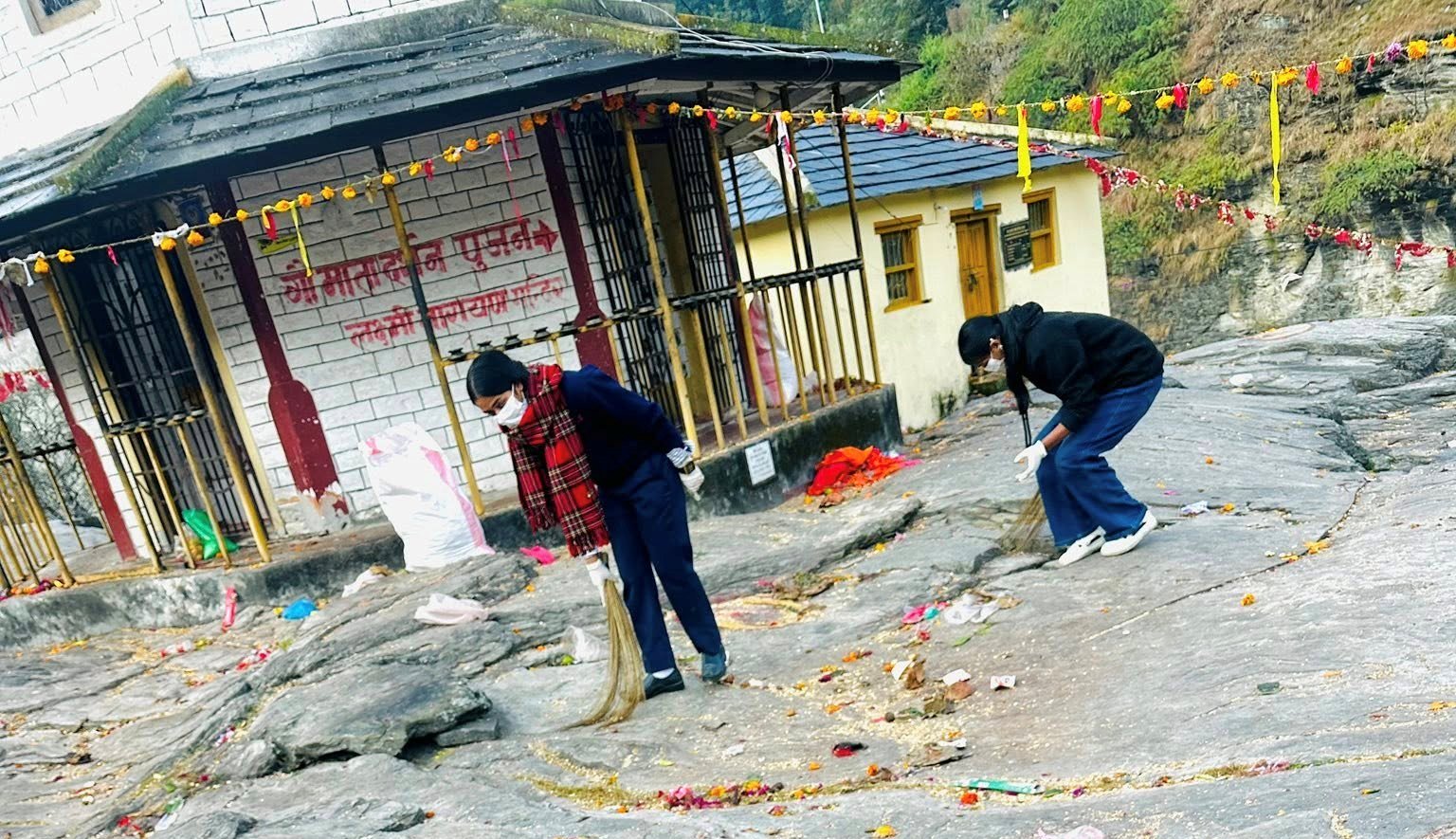 बेनी सामुदायिक माविका विद्यार्थीले म्याग्दीको प्रसिद्ध गलेश्वर शिवालय मन्दिर क्षेत्र सरसफाई गरेका छन् । बालाचतुर्दशी पर्वको अवसरमा मन्दिरमा दर्शन गर्न आएका भक्तजनले सात बिज छर्ने क्रममा मन्दिर भित्र तथा गलेश्वर बजार, बसपार्क क्षेत्रसम्म सरसफाई गरेको विद्यालयका शिक्षक भरत थापाले बताउनुभयो ।मन्दिर सरसफाईका लागि गएका विद्यार्थीलाई मन्दिर क्षेत्रका बारेमा जानकारीसँगै करिब ५ घण्टा सरसफाई गरिएको शिक्षक थापाको भनाई छ ।