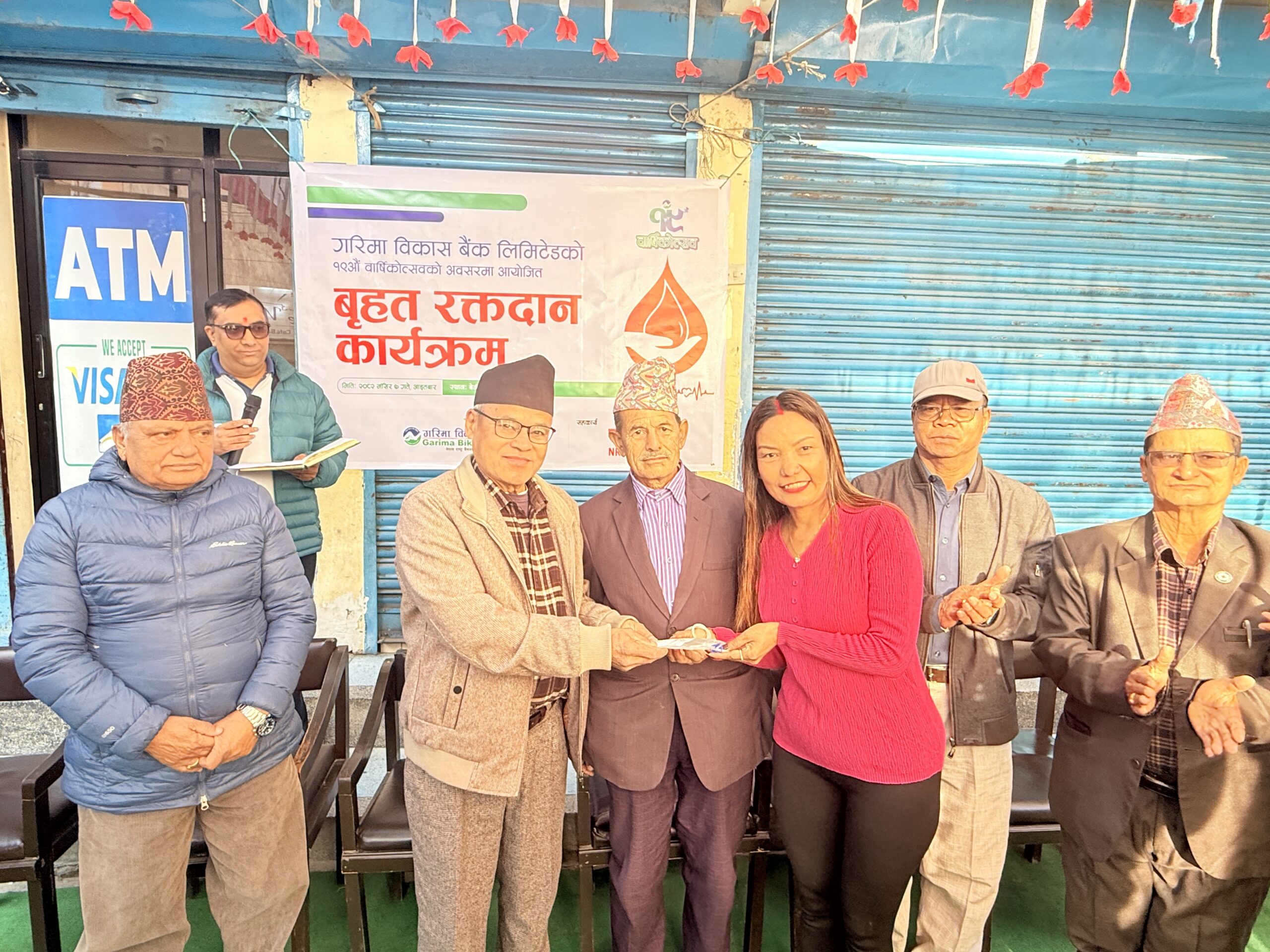 गरिमा विकास बैंकले आफ्नो १९ औं बार्षिकोत्सवको अवसरमा आइतबार सदरमुकाम बेनीमा बृहत रक्तदान कार्यक्रम गरेको छ। बैंकका पूर्व सञ्चालक एवम् बेनी नगरपालिकाका संस्थापक मेयर हरिकुमार श्रेष्ठले ब्लडव्याग हस्तान्तरण गरी रक्तदान कार्यक्रमको सुरुवात गदैं वित्तिय कारोबारसँगै बैंकले सामाजिक उत्तरदाहित्व अन्तरगतका शिक्षा, स्वास्थ्य, वित्तिय साक्षरता सहितका सामाजिक कार्यमा सहयोग गर्ने गरेको बताए।