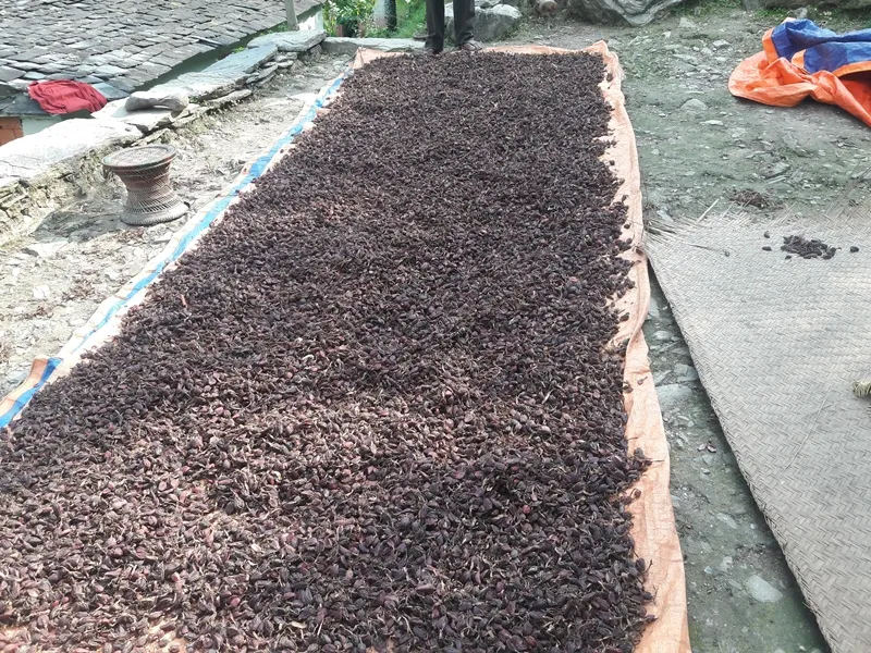 ‘अलैचीबाट बर्षेनी कृषकले मनग्य कमाइरहनुभएको छ,अब बाँझो र सामुदायिक बनमा पनि अलैची खेतीका लागि पहल गरेका छौ’ अध्यक्ष रोकाले बेनीअनलाइनलाई भन्नुभयो । यसबर्ष अलैची टिपेर सुकाएर ब्यापारीलाई बेचेका स्थानीय कृषकले नयाँ बिरुवा विस्तार तथा खेतीमा सरसफाईमा ब्यस्त छन्।