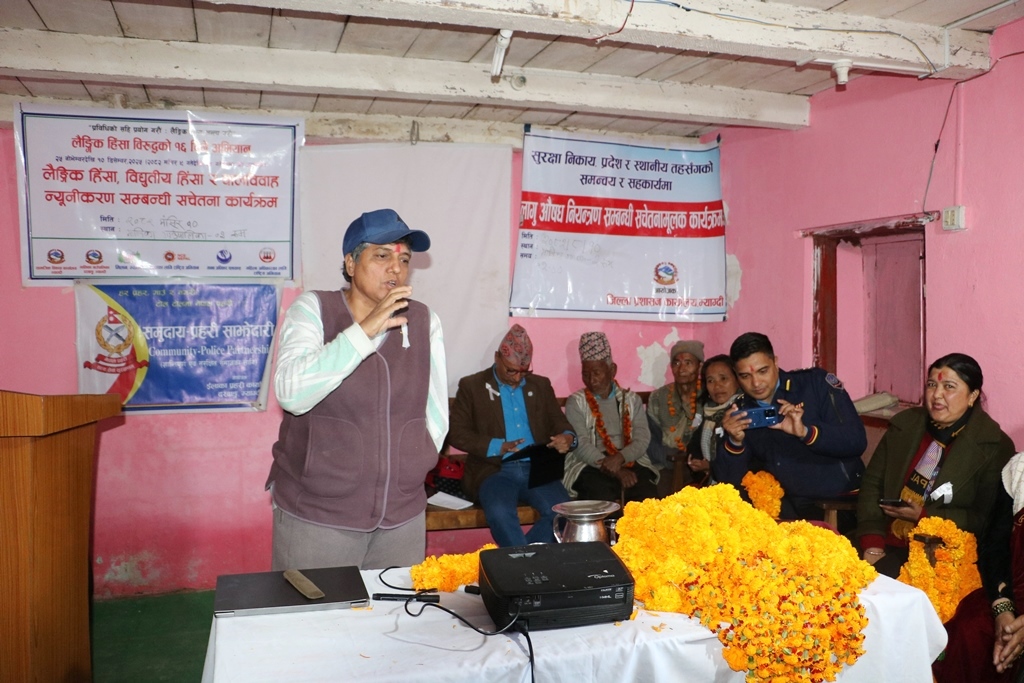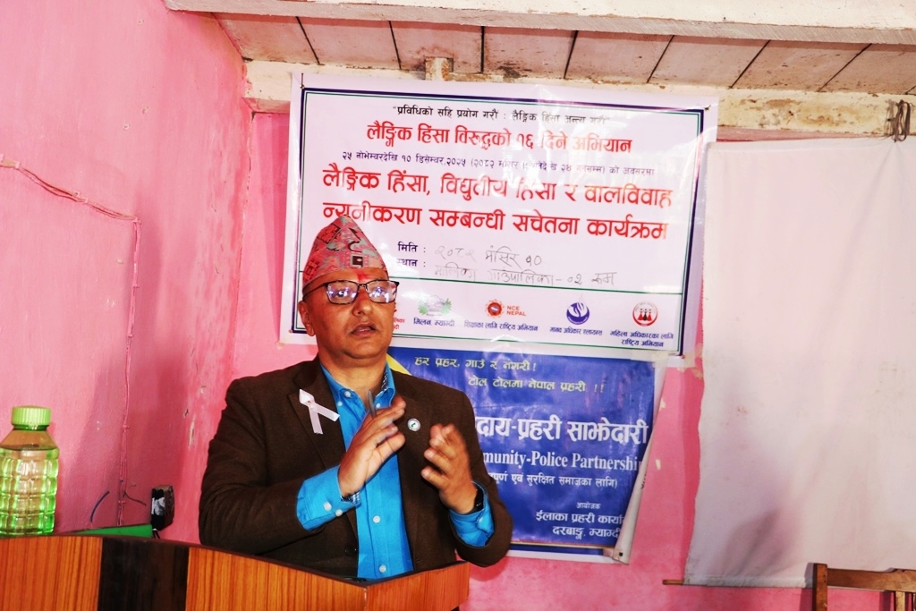 ‘प्रविधिको सही प्रयोग गरौँ, लैङ्गिक हिंसा अन्त्य गरौँ’ भन्ने मूल नारासहित लैङ्गिक तथा विद्युतीय हिंसा र बालविवाह न्यूनीकरण सम्बन्धी सचेतनामूलक कार्यक्रम सम्पन्न भएको छ । लैङ्गिक हिंसा विरुद्धको १६ दिने अभियान अन्तर्गत बुधवार म्याग्दीको मालिका गाउँपालिका–२, रुममा कार्यक्रम गरिएको हो ।