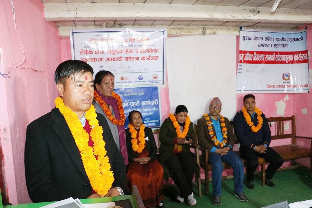 सोही अवसरमा जिल्ला प्रशासन कार्यालय म्याग्दीद्वारा सुरक्षा निकाय, प्रदेश र स्थानीय तहसँगको समन्वय तथा सहकार्यमा लागूऔषध नियन्त्रण सम्बन्धी सचेतनामूलक र इलाका प्रहरी कार्यालय दरबाङबाट समुदाय–प्रहरी साझेदारी कार्यक्रम अन्तर्गत पनि सचेतनाको कार्यक्रम सम्पन्न गरिएको थियो ।