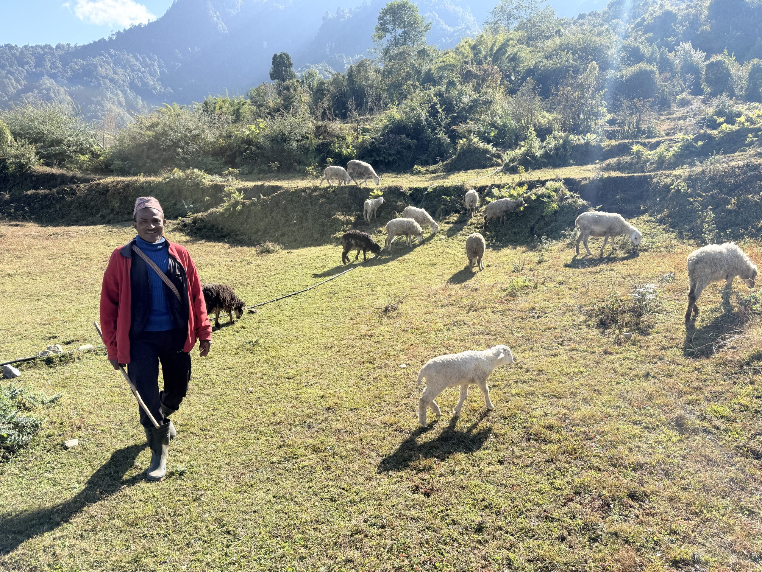 म्याग्दीको मंगला गाउँपालिका-५टिकावाङका कर्णबहादुर खत्री गाउँकै एक्ला भेडापालक कृषक हुनुहुन्छ । वैदेशिक रोजगारीको सिलसिलामा ५ बर्ष खाडी मुलुक मलेसिया, साउदी अरव र युएईमा बिताएर फर्किनुभएका खत्री विगत दुई ददशकदेखि गाउँका पाखापखेरा र वनजङ्गलमा भेडा चराएर बित्ने गरेको छ । बैदेशिक रोजगारीबाट फर्किएपछि ५० हजार लगानीबाट १५ वटा भेडाको पाठा खरिद गर्नुभएका खत्रीको गोठमा अहिले माउ भेडा, भेडाका पाठा पाठी र साँढ गरी ४५ वटा छन् ।