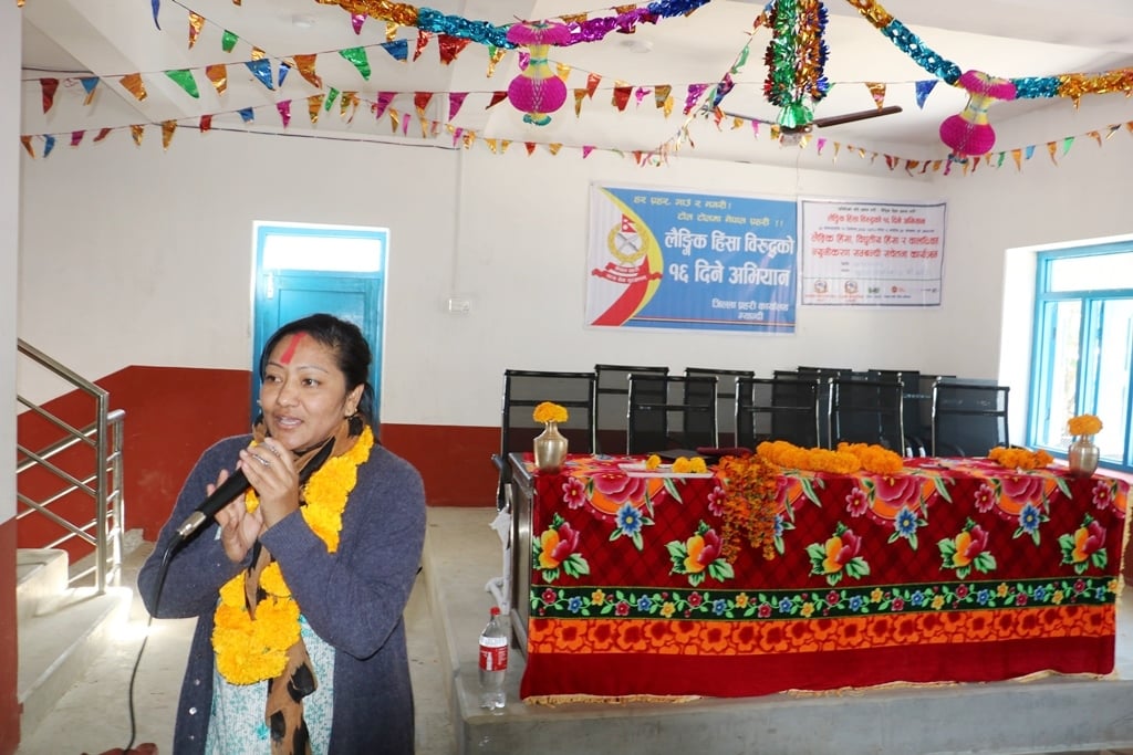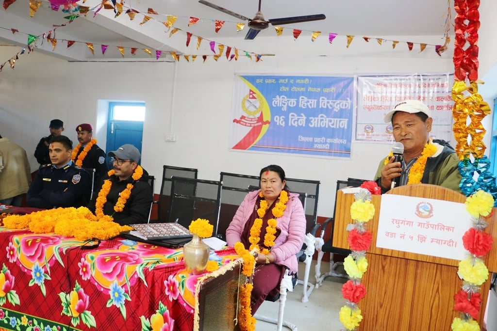 जिल्ला समन्वय अधिकारी निलकण्ठ शर्माले महिला, पुरुष र यौनिक तथा लैङ्गिक अल्पसङ्ख्यबीच एउटाले अर्कोलाई गैरजिम्मेवारपूर्ण तरिकाले गरिने व्यवहार नै लैङ्गिक हिंसा भएकाले यसको रोकथाम गर्न सचेतना फैलाउनुपर्ने बताउनुभयो । रघुगंगा ५ नम्बर वडाका वडा अध्यक्ष मनबहादुर शेरमञ्जाले वडा र गाउँपालिकामार्फत गाउँवस्तीमा सचेतना सम्बन्धी विभिन्न कार्यक्रमहरु सञ्चालनमा जोड दिइएको बताउनुभयो ।