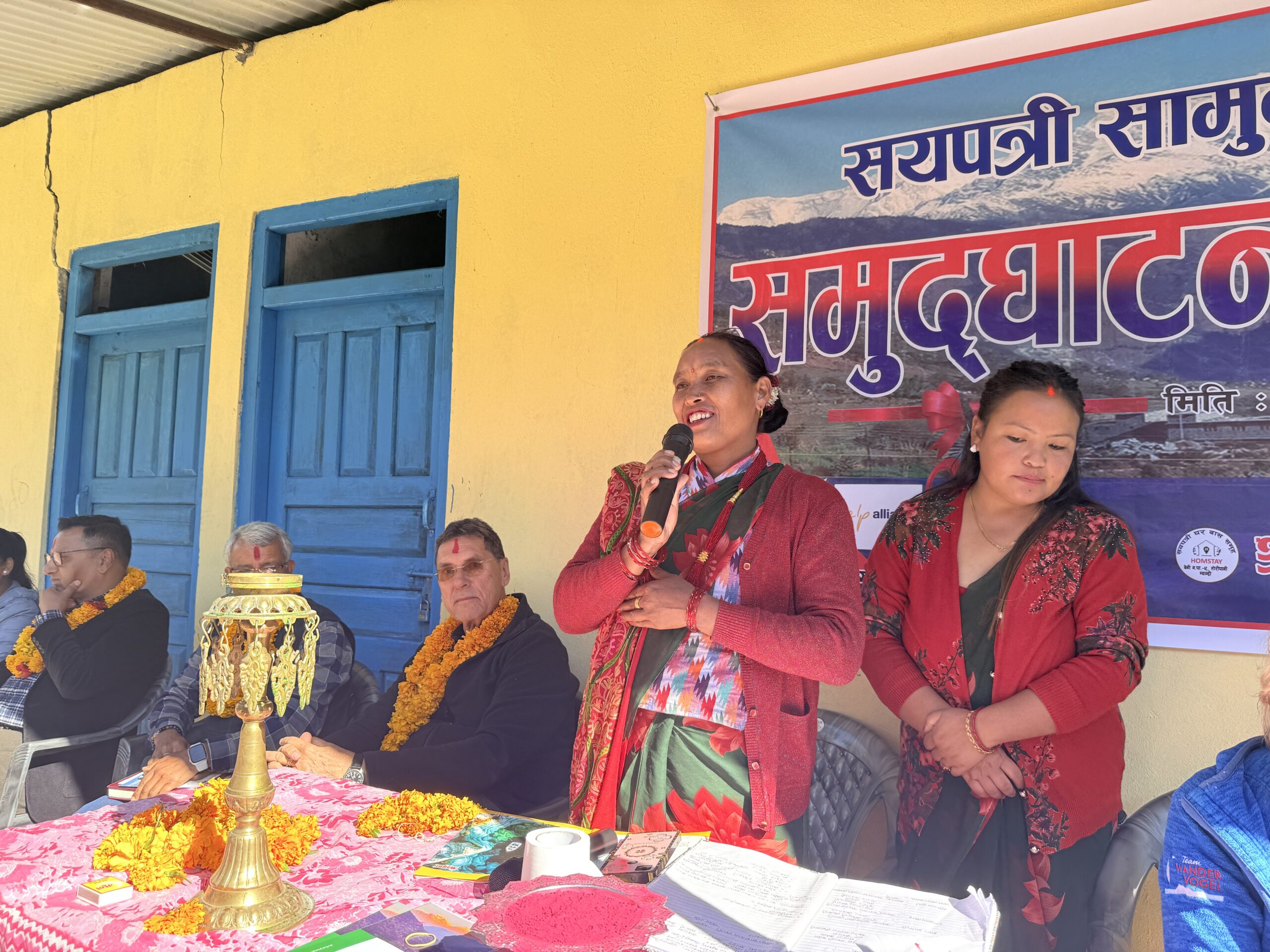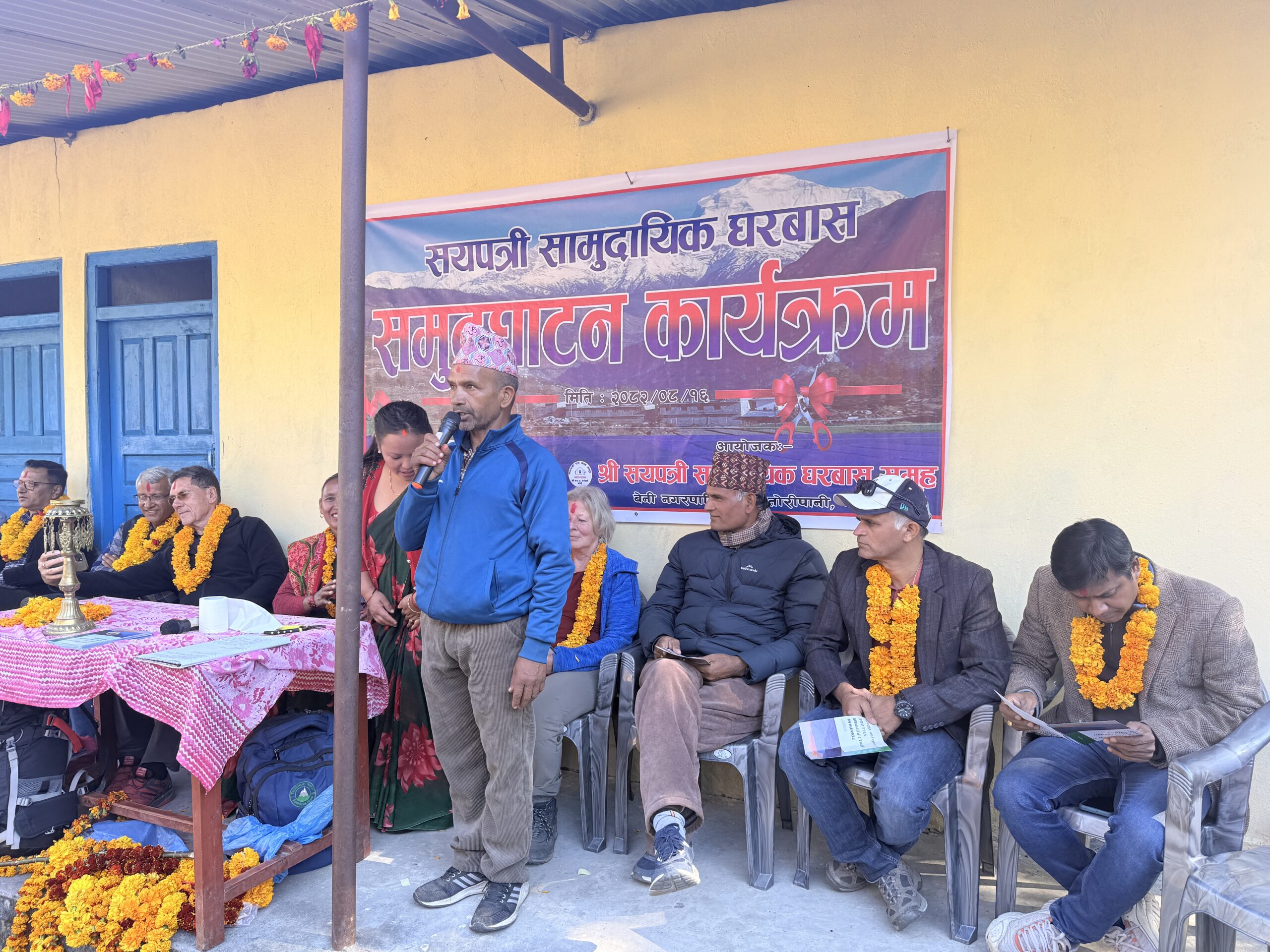 कार्यक्रममा म्याग्दीका प्रमुख जिल्ला अधिकारी बद्रीप्रसाद तिवारी, इको हिमाल अष्ट्रियाका अध्यक्ष कुर्ट लुगर, वडा अध्यक्ष चक्र केसी, डिभिजन वन कार्यालयका सहायक डिभिजन वन अधिकृत चन्द्रमणी सापकोटा,नेपाल पत्रकार महासंघ म्याग्दीका अध्यक्ष हरिकृष्ण गौतमले होमस्टेमा लगानी अनुसारको प्रतिफल तथा बजारीकरणमा सहयोगको प्रतिबद्धता समेत जनाउनुभएको थियो । होमस्टे उद्घाटन कार्यक्रममा पुगेका पर्यटकलाई अतिथिलाई स्थानीयबासीले भब्य स्वागत गरेका थिए । समूहका अध्यक्ष खत्रीको अध्यक्षता, इब गिरीको स्वागत र उषा पाईजाको सञ्चालनमा कार्यक्रम सम्पन्न भएको थियो ।