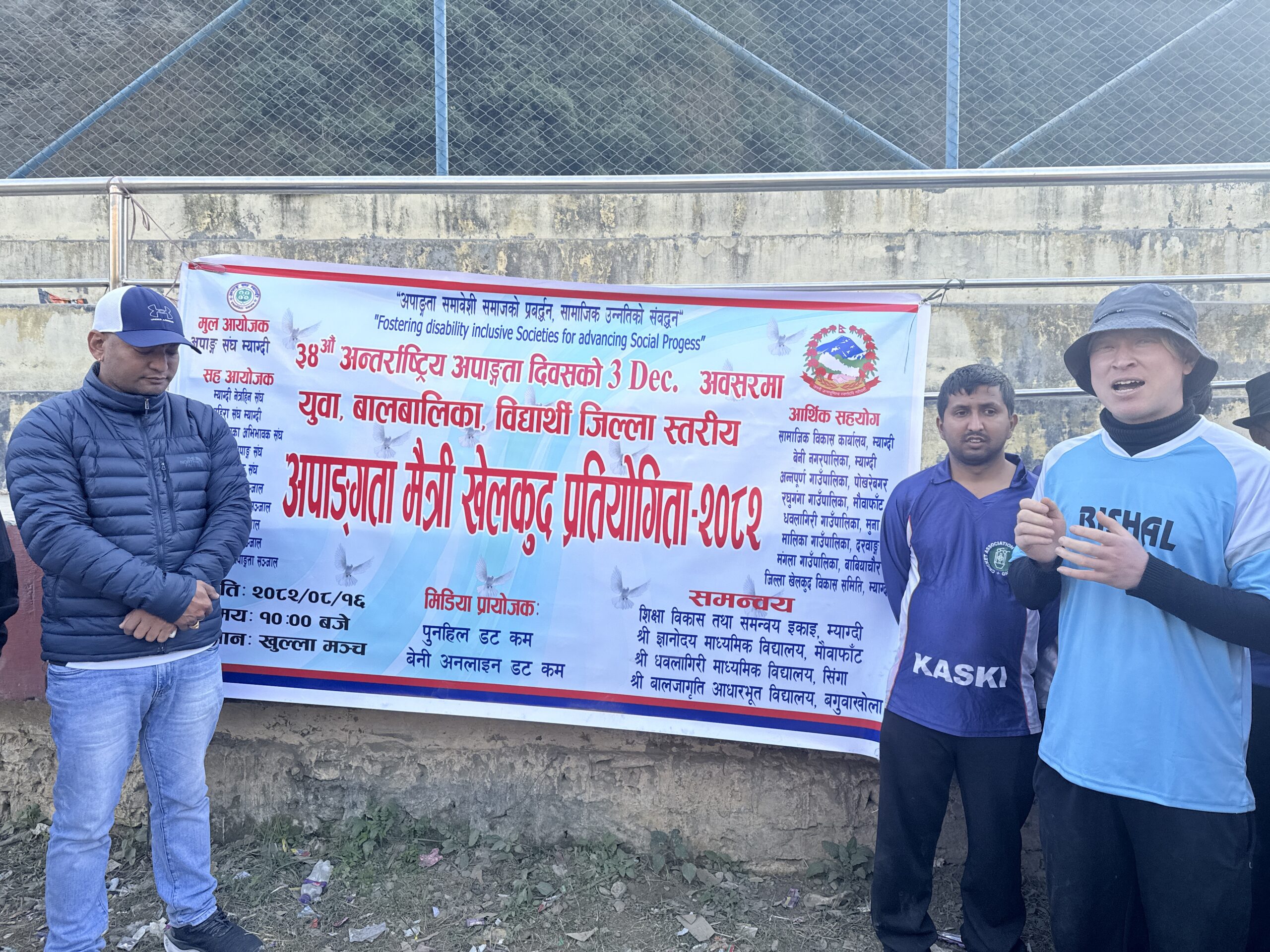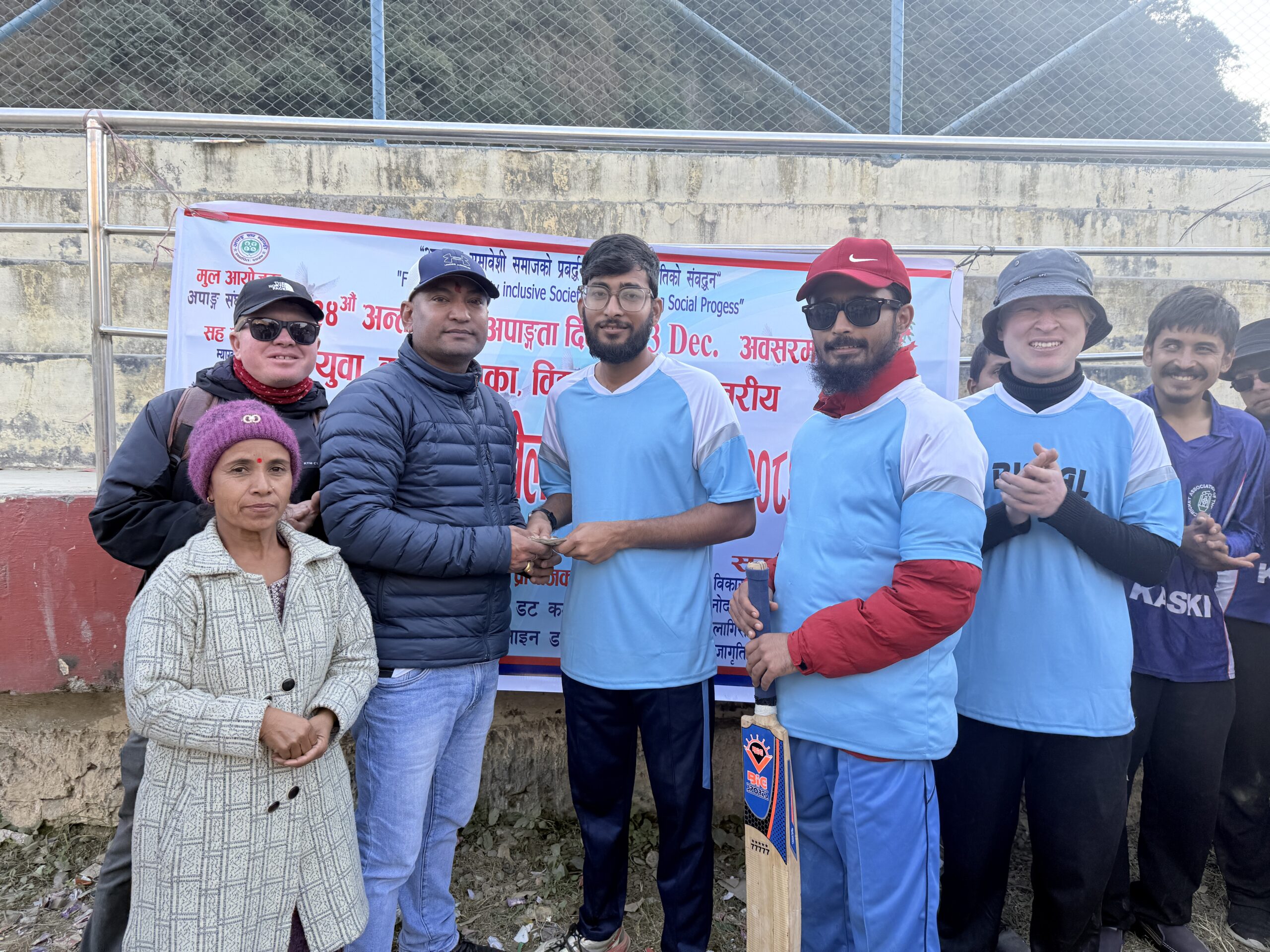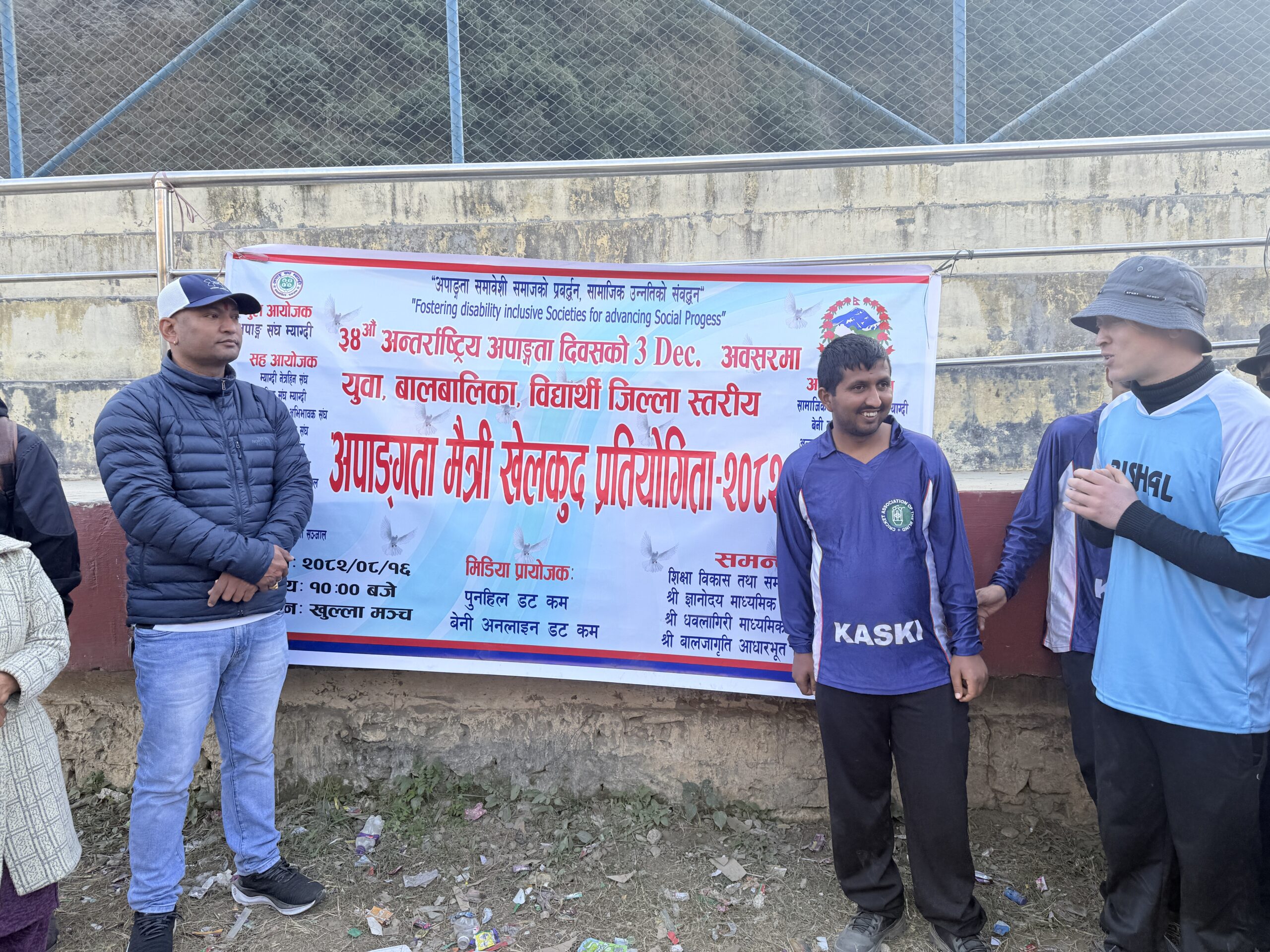 ३४ औँ अन्तर्राष्ट्रिय अपाङ्गता दिवसको अवसरमा अपाङ्ग संघ म्याग्दीले आयोजना गरेको मैत्रीपूर्ण क्रिकेट खेलमा अपाङ्ग संघ कास्की विजय भएको छ । मंगलबार खुल्लामञ्च बेनीमा आयोजित प्रतियोगितामा टस हारेर पहिला ब्याटिङको निम्तो पाएको नेत्रहीन क्रिकेट संघ म्याग्दीले जितका लागि २० ओभरमा ७४ रनको लक्ष्य प्रस्तुत गरेकोमा अपाङ्ग संघ कास्कीले ६ विकेट गुमाएर जित हासिल गरेको थियो ।