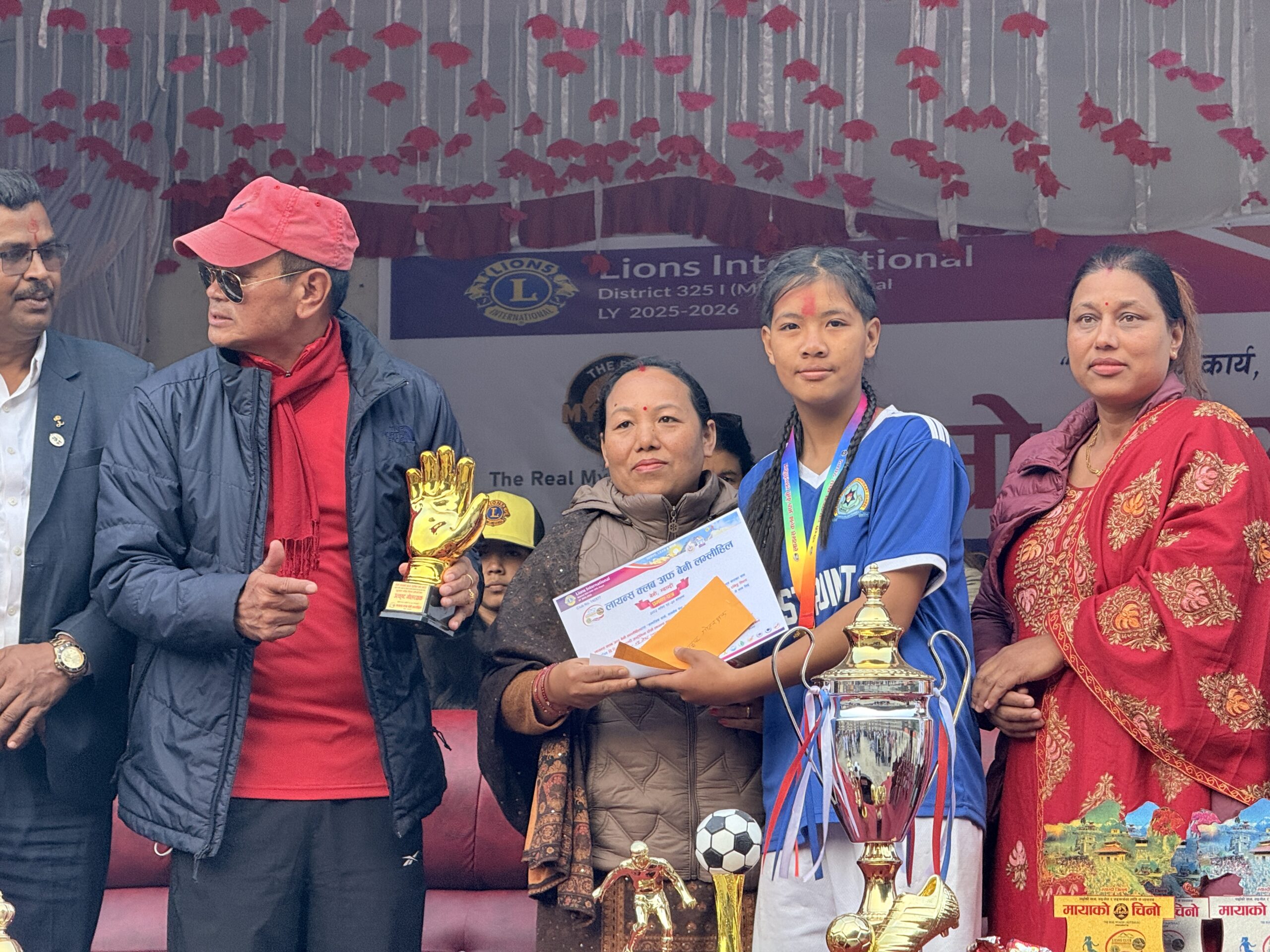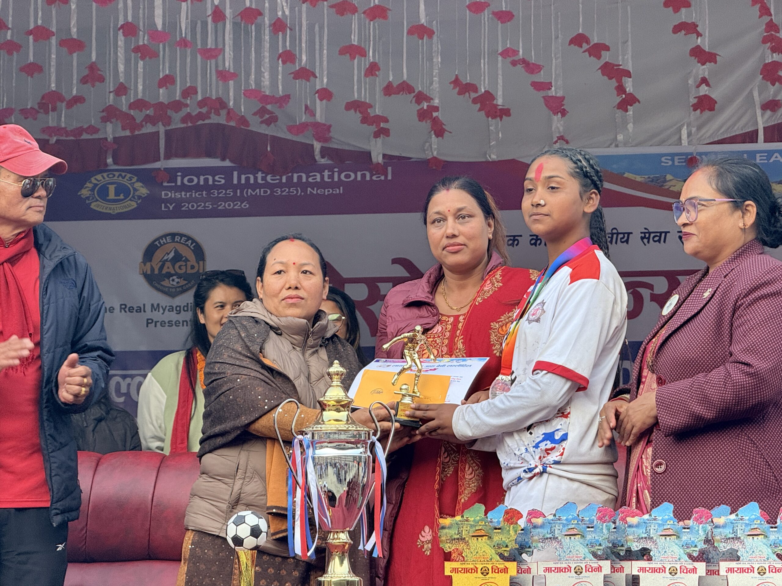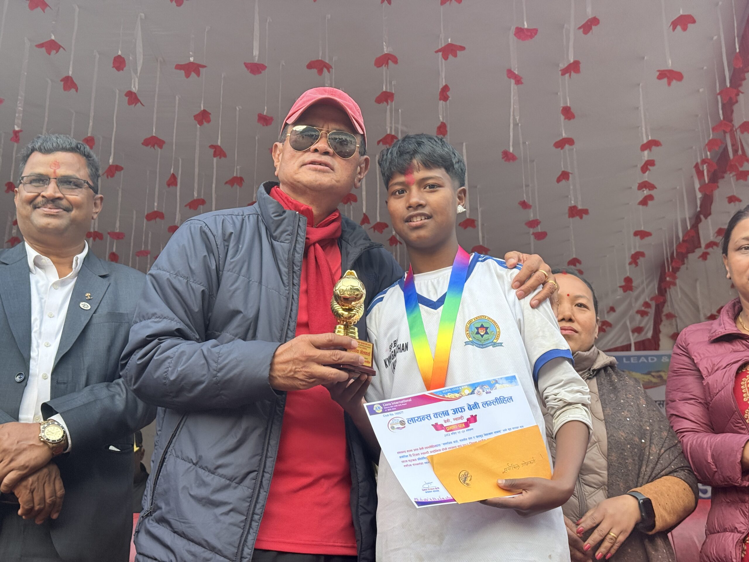 प्रतियोगितामा सर्वोत्कृष्ट खेलाडी न्यू वेष्ट प्वाइन्टकी काब्याश्री बानियाँ,उत्कृष्ट गोलरक्षक न्यु वेष्ट पोइन्टकै रिदिमा भट्टचन,उत्कृष्ट मिडफिल्डर न्यू वेष्ट पोइन्टकी समिक्षा घर्ती, सर्वाधिक गोलकर्तामा न्यू वेष्ट प्वाइन्टकी सरिता पटेल १० गोल,उत्कृष्ट डिफेन्डरमा वेष्ट प्वाइन्टकी प्रमिशा बानियाँ, उत्कृष्ट स्ट्राइकर प्रकाश माविकी समिक्षा दर्जी,उत्कृष्ट प्रशिक्षक वेष्ट प्वाइन्टका दिपेन राई र राइजिङ प्लेयर प्रकाश मावि अञ्जली सिर्पालीलाई नगद सहित पुरस्कृत गरिएको थियो ।