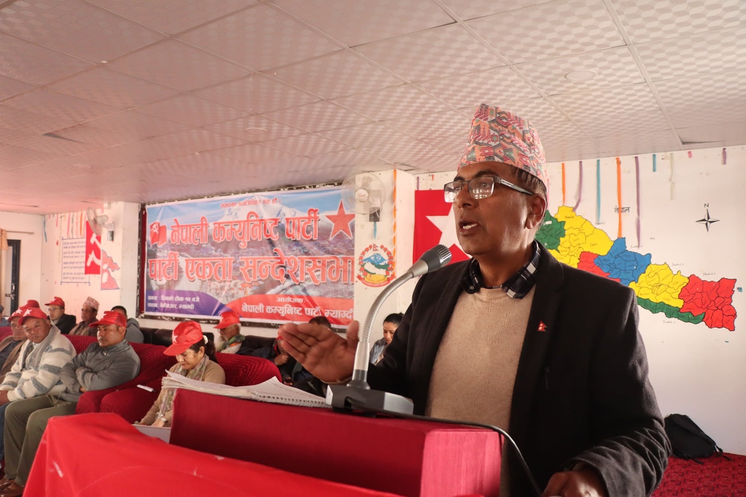 “हाम्रो एकता संसदमा उपस्थित संख्या बढाउन र चुनाव जित्नका लागि मात्र नसोच्नुहोला,” उहाँले भन्नुभयो “वैज्ञानिक समाजवादको लक्ष्य हाँसिल गर्नका लागि भएको यो एकतालाई दिर्घकालिन बनाउन विगतका कमजोरीबाट पाठ सिकेर अघि बढेका हौ ।” कार्यक्रममा नेताहरु ढाकाराम गौतम, गमबहादुर श्रीस, रेशम जुग्जाली, दुर्गा कार्की, कृष्ण विश्वकर्मा, सेरबहादुर केसी, हरि भण्डारी लगायतले जेनजी पुस्ताको आन्दोलनपछि देशमा सिर्जना भएको नयाँ परिस्थिति अनुसार रुपान्तरित भएर पार्टी एकता भएको बताउनुभयो ।