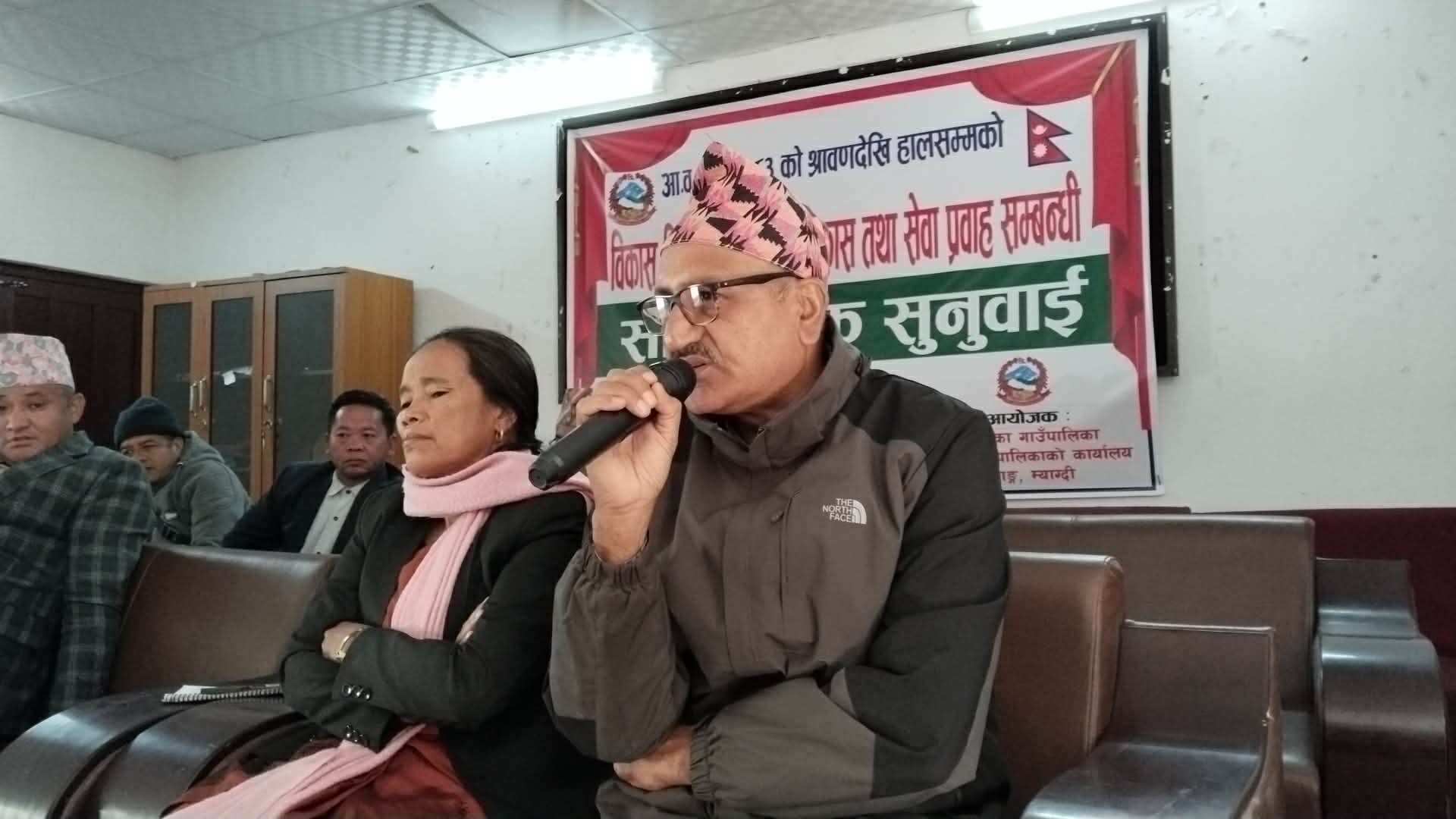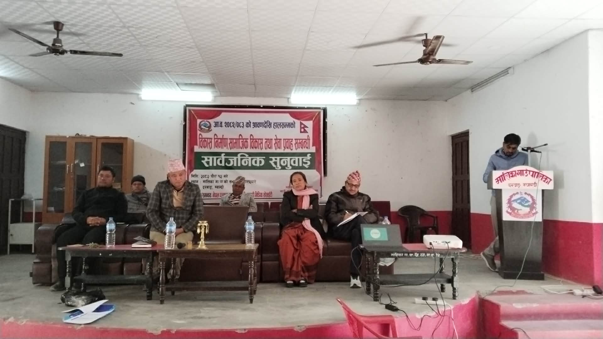 चालु आर्थिक वर्ष २०८२÷०८३ को हाल सम्मको अवधिमा भए गरेका विकास निर्माण तथा सेवा प्रवाह सम्बन्धी सर्वाजनिक सुनुवाइमा सहभागी ११ जनाले कार्यालयको सेवा प्रवाह तथा विकास निर्माण सन्दर्भमा प्रश्न राख्नु भएको थियो । दरवाङका व्यवसायी अमृत सापकोटा, रेशम खत्री, बुद्धि जुगजाली, सपना गिरी, ओमबहादुर रोका, हिरा पुन, सुनिता थापा, जुना केसी, सुमन गर्बुजा, दिवाकर सुवेदी, भीमकुमारी खत्रीले सार्वजनिक सुनुवाई कार्यक्रममा आफ्नो गुनासो तथा धारणा राखेका थिए ।