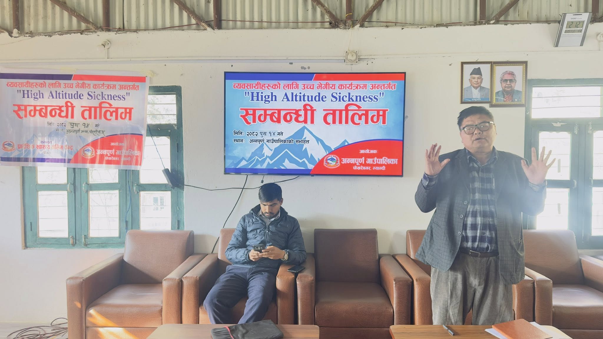 अन्नपूर्ण गाउँपालिकाका स्वास्थ्य शाखाका प्रमुख समुन्द्र बरुवालले उच्च पहाडी र हिमाली क्षेत्रमा पर्ने ४, ५, ६, ७ र ८ नम्बर वडामा रहेका स्वास्थ्य संस्थाका स्वास्थ्यकर्मी र पर्यटकीयस्थलका होटल व्यवसायीलाई आधारभूत तालिम प्रदान गरिएको जानकारी दिए ।