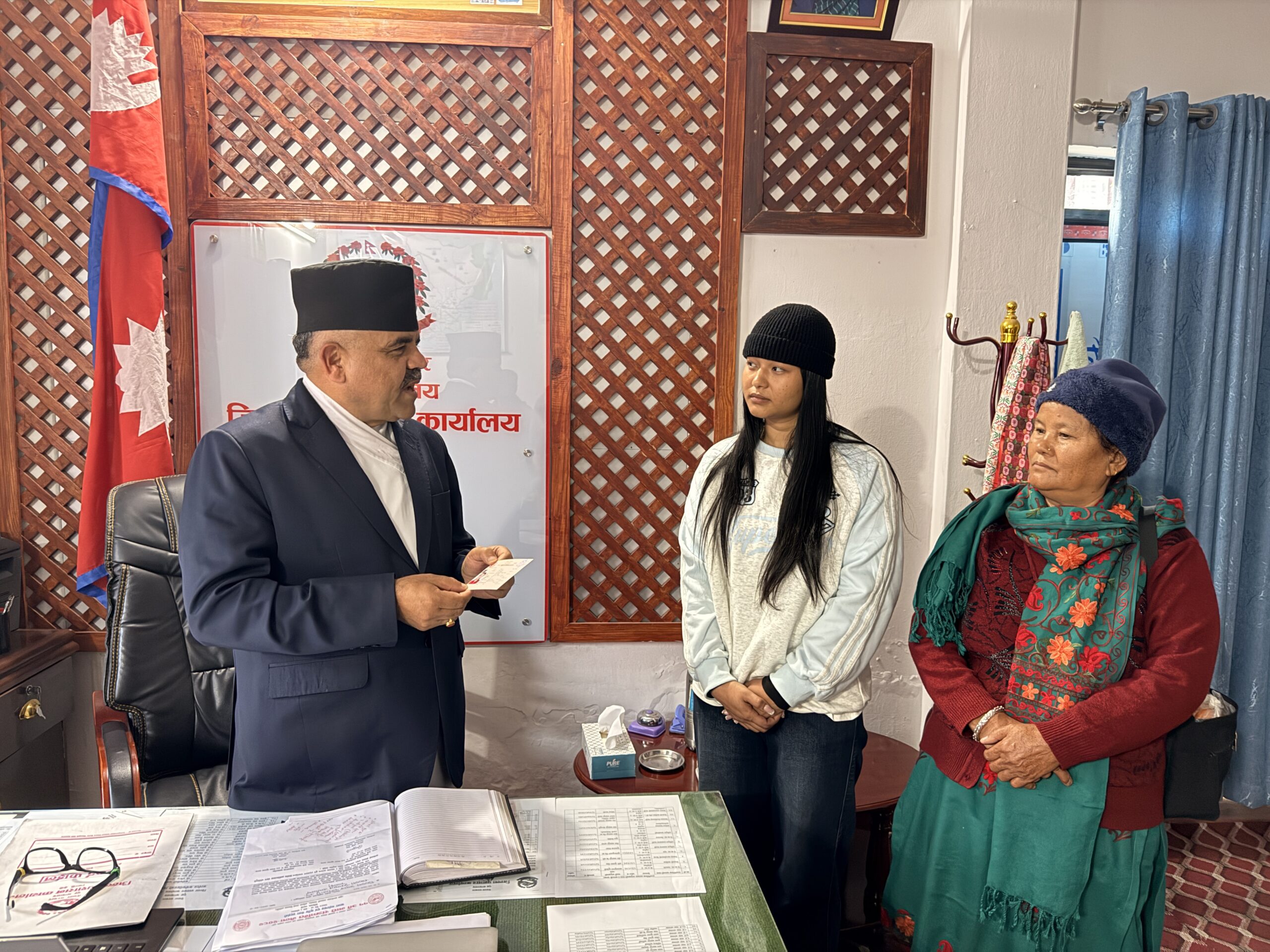 जिल्ला प्रशासन कार्यालय म्याग्दीले आमाको नामबाट पहिलोपटक नागरिकता प्रदान गरेको छ । बाबुको पहिचान नखुलेकाको अवस्थामा नागरिकताबाट बन्चित हुनुभएकी म्याग्दीको मालिका गाउँपालिका–५,देविस्थानकी २२ बर्षिया सिमा पुनलालाई प्रमुख जिल्ला अधिकारी रविन्द्र आचार्यले सोमबार वंशजका आधारमा नागरिकता प्रदान गर्नुभएको हो । नागरिकता ऐन,२०६३ को दोस्रो संशोधन तथा नियमावलीको चौथो संशोधन बमोजिम पुनलाई ५६ वर्षीया आमा लिलसरा पुनको नामबाट नागरिकता प्रदान गरिएको सहायक प्रजिअ कुलप्रसाद आचार्यले बताउनुभयो ।