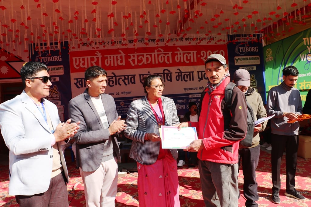 उत्कृष्ट कृषकहरुलाई वरिष्ठ कृषि विकास अधिकृत बाँस्तोलासहित म्याग्दी उद्योग वाणिज्य संघका अध्यक्ष सुविन श्रेष्ठ र महिला उद्यम विकास समितिका सभापति अम्बिका श्रेष्ठले प्रमाणपत्र र नगदसहितको पुरस्कार वितरण गर्नुभएको थियो । पुरस्कृत हुने कृषकहरुमा अन्य तरकारी बालीतर्फ जिल्लाको बेनी नगरपालिका–२ खबराका अगुवा कृषक चन्द्रबहादुर कार्की, रघुगंगा गाउँपालिका–३ का जीतबहादुर खत्री, बेनपा–६ का श्रीलाल रिजाल र अन्नपूर्ण–६ घारका राम बरुवाल रहनुभएको छ ।