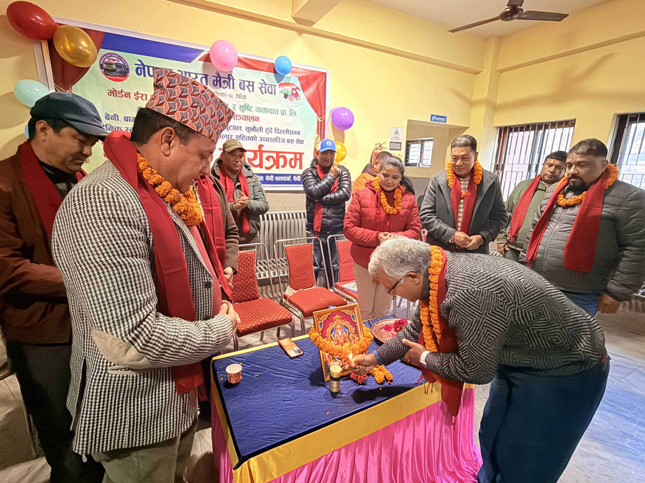 म्याग्दीको सदरमुकाम बेनीबाट सिधै बस सेवामार्फत भारतको नयाँ दिल्ली सेवा एक कार्यक्रमका बिच सुभारम्भ भएको छ । बुधबार बेनी नगरपालिका–८, कालिपुल बसपार्कबाट बेनी नगरप्रमुख सुरत केसीले बस सेवा उद्घाटन गर्नुभएको हो । मोडर्न इरा टुर्स एन्ड ट्राभल्स र सृष्टि यातायात प्रालिले हरेक दिन विहान ६ः४५ बजेदेखि बेनी कालिपुलबाट स्याङ्जा, वालिङ, भैरहवा, अयोध्या, आग्रा हुदै नयाँ दिल्लीसम्मको बस सेवाले जिल्लाको धार्मिक तथा पर्यटन क्षेत्रलाई समेत टेवा पुर्याउने विश्वास गरिएको छ ।
