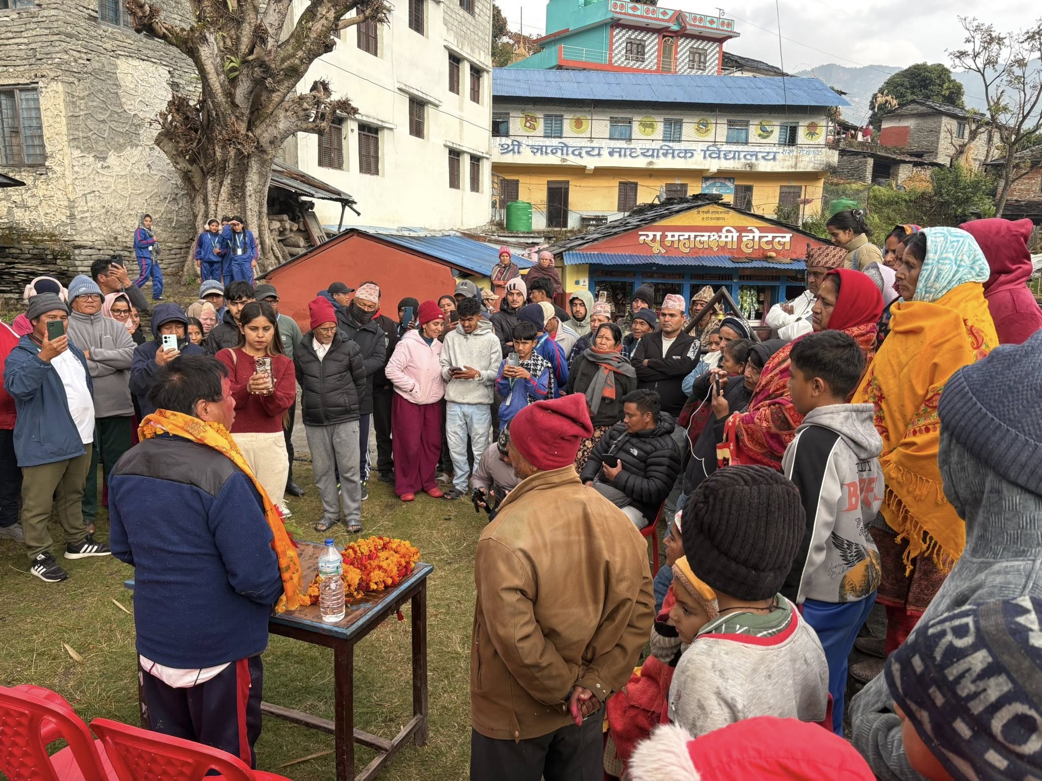 डाँडाखानी गाउँका दाजुभाई दिदीबहिनीहरु, महावीर पुन आएको छ, चुनावमा उम्मेद्वार भएर आएको छ। ल भेटघाट गर्न चाहनेहरु आउनुस। प्रश्न छ भने सोध्नुस, भोट दिन मन लागे भोट दिनुस। आयो, ल, दाजुभाई दिदिबहिनी, उताउताबाट पनि आउनुस, यताबाट पनि आउनुस। भोट दिन मन नलागे के गर्ने भन्ने एकजना महिलाको प्रतिक्रियाको जवाफमा पुनले भनेका छन, अ, नदिएपनि हुन्छ।