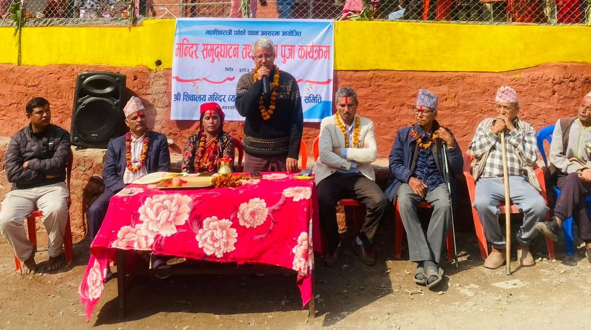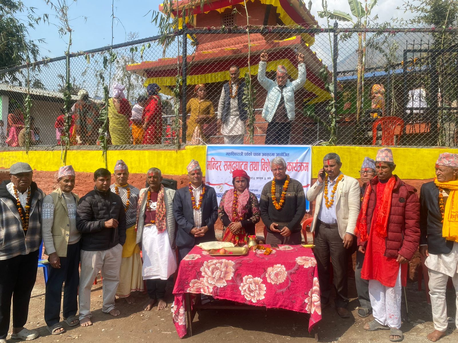 मन्दिर उद्घाटन कार्यक्रमको अध्यक्षता अमृता बानियाँ, स्वागत पुर्व शिक्षक तिर्थबहादुर बानियाँ र सञ्चालन सचिव सुमन बानियाँले गर्नुभएको थियो । मन्दिरमा आर्थिक संकलनबाट पुननिर्माणपछि करिब २ लाख बचत रहेको छ । यसअगाडी गाउँमा रहेको बालमन्दिर आधारभुत विद्यालय आगलागीबाट जलेर नष्ट भएको अवस्थामा विद्यालयको भवन पुननिर्माण सहितका कार्यमा समेत समुदायले सहयोग गरेका थिए ।