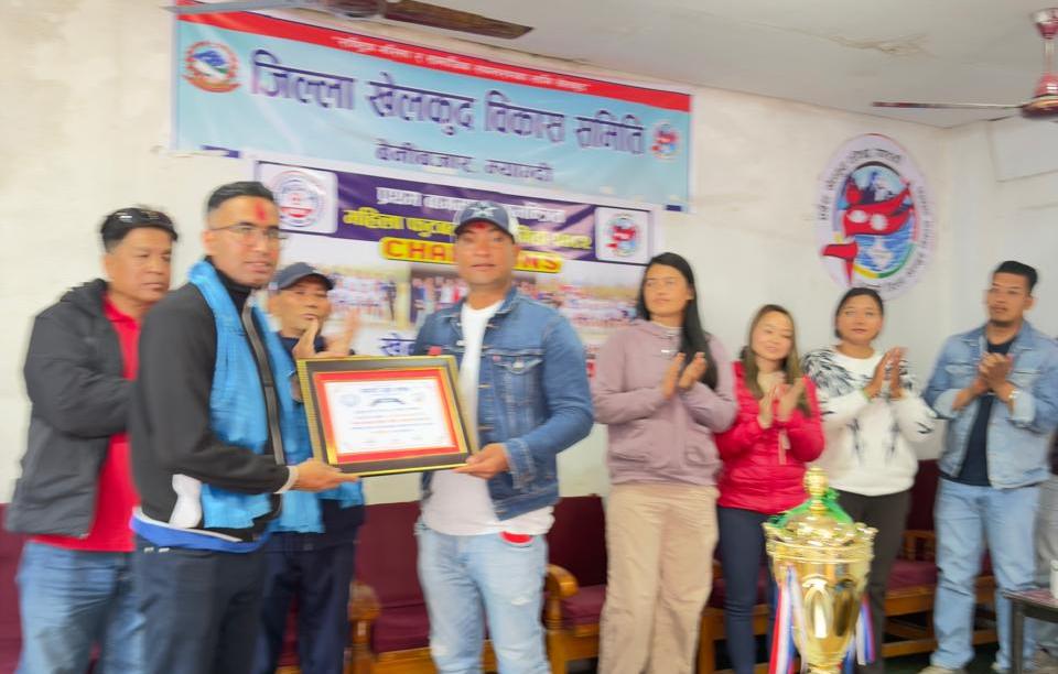 जिल्ला खेलकुद विकास समितिका अध्यक्ष सुमन श्रेष्ठ, जिल्ला फुटबल संघका अध्यक्ष कुमार बानियाँ, नेपालको महिला राष्ट्रि«य भलिबल टिमकी कप्तान अरुणा शाहीले सम्मान गर्नुभएको थियो । सम्मान कार्यक्रममा बोल्दै जिल्ला खेलकुद विकास समितिका अध्यक्ष श्रेष्ठले जिल्लामा उत्कृष्ट खेलसँगै प्रशिक्षणमार्फत खेलाडीको हौसला बढाउन प्रतिबद्ध रहेको बताउनुभयो । ‘खेलाडीको प्रेत्साहनमा कुनैपनि कमी हुन दिने छैनौ, जिल्लालाई चिनाउने खेलाडीको साथमा नयाँ खेलाडी उत्पादन गछौ’ अध्यक्ष श्रेष्ठले भन्नुभयो।