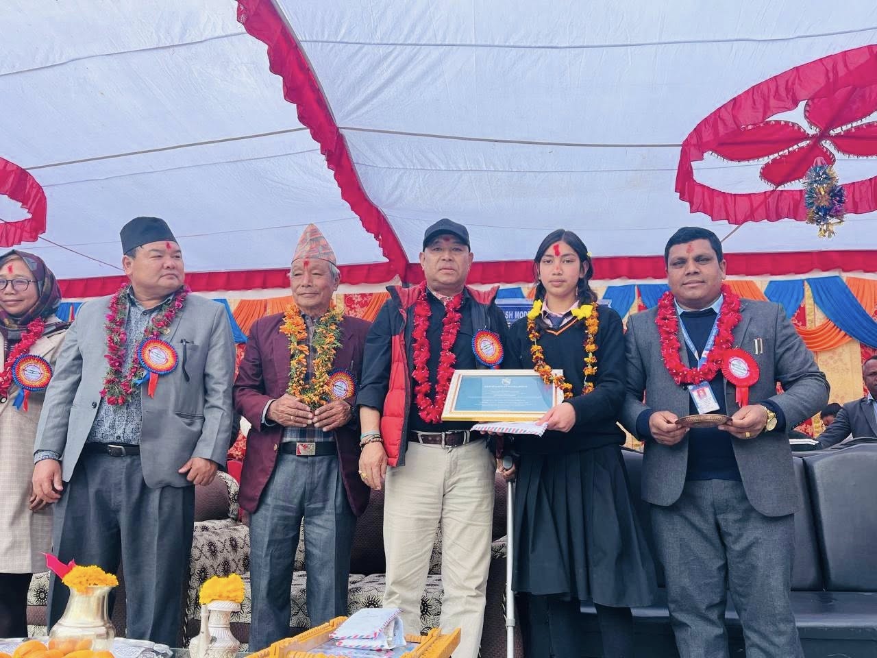 पर्वतारोहणको क्षेत्रमा दर्जन कीर्तिमानी कायम गरेका पुर्जाले विद्यालयमा स्थापना गरेको ४० लाखको अक्षयकोषबाट गत वर्षको एसइईमा विद्यालय प्रथम हुन अप्सन पूर्जा ८० हजार र कक्षा ८ मा प्रथम हुने प्रतिज्ञा घर्तीले नगद ५० हजार नगद र सम्मान पत्र गाउँपालिकाका अध्यक्ष भारतकुमार पुन, उपाध्यक्ष दिवाकुमारी पुन, प्रमुख प्रशासकीय अधिकृत कपिलप्रसाद पाण्डे, आरोही पूर्जाका दाई कमलबहादुर पूर्जाले पुरस्कार वितरण गर्नुभएको थियो ।