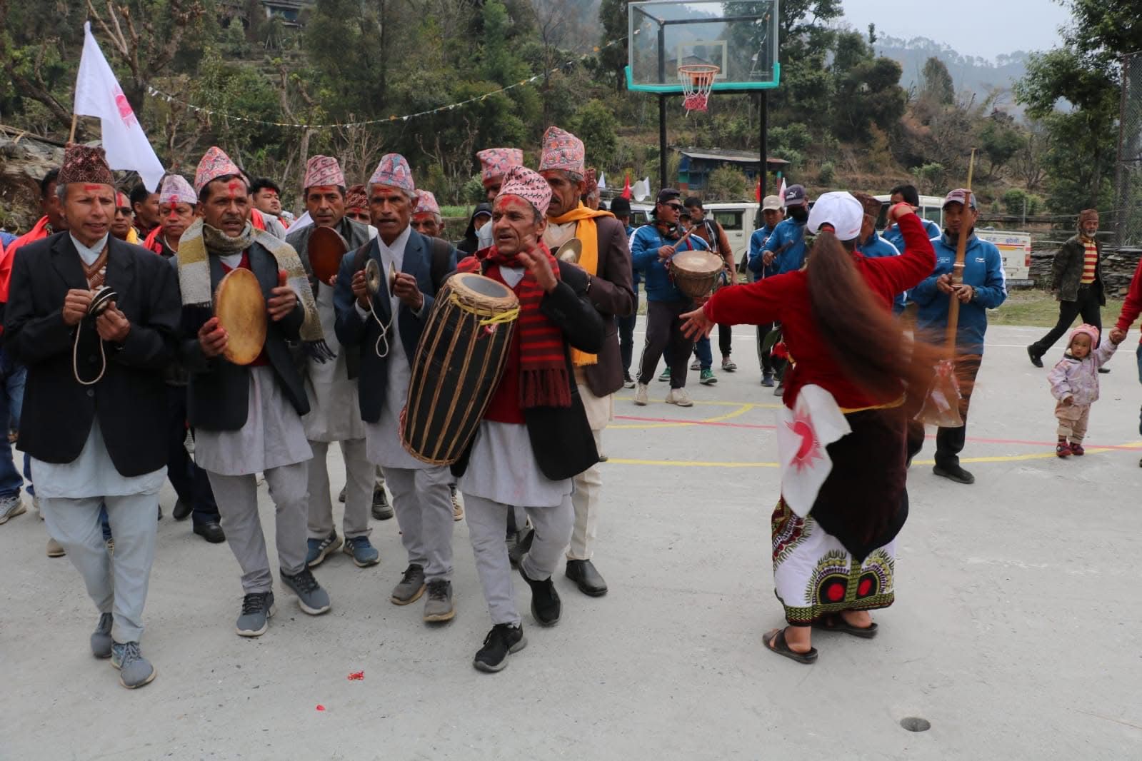 गत बुधबार जिल्लाको मंगला गाउँपालिका–३ बरंजामा चुनाव प्रचारका लागि पुगेका नेकपा एमालेका उम्मेदवारलाई स्थानीयले भजन–कीर्तनमार्फत स्वागत गरे । धार्मिक–सांस्कृतिक शैलीमा गरिएको स्वागतले प्रचारलाई उत्सवमय बनाएको नेकपा एमालेका युवा नेता प्रकाश पौडेलले बताउनुभयो ।